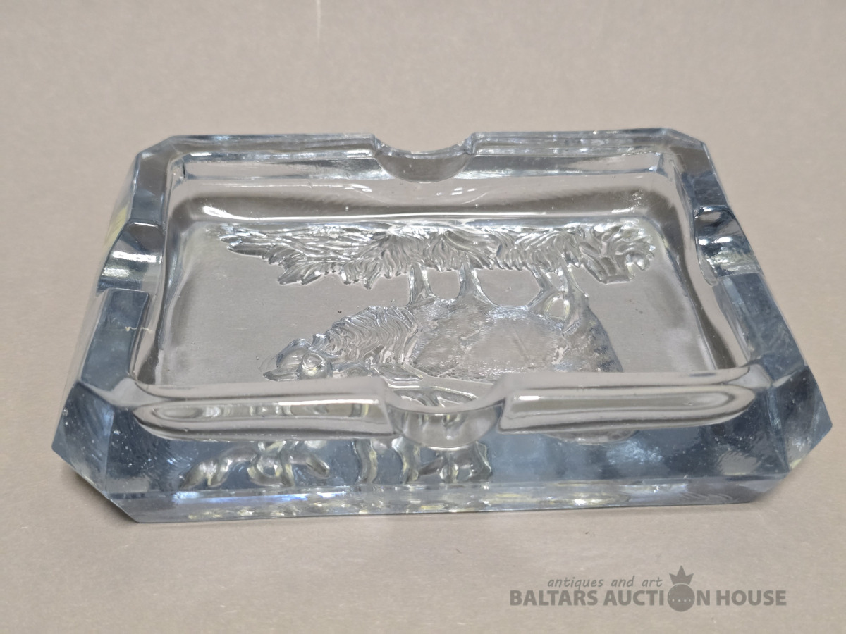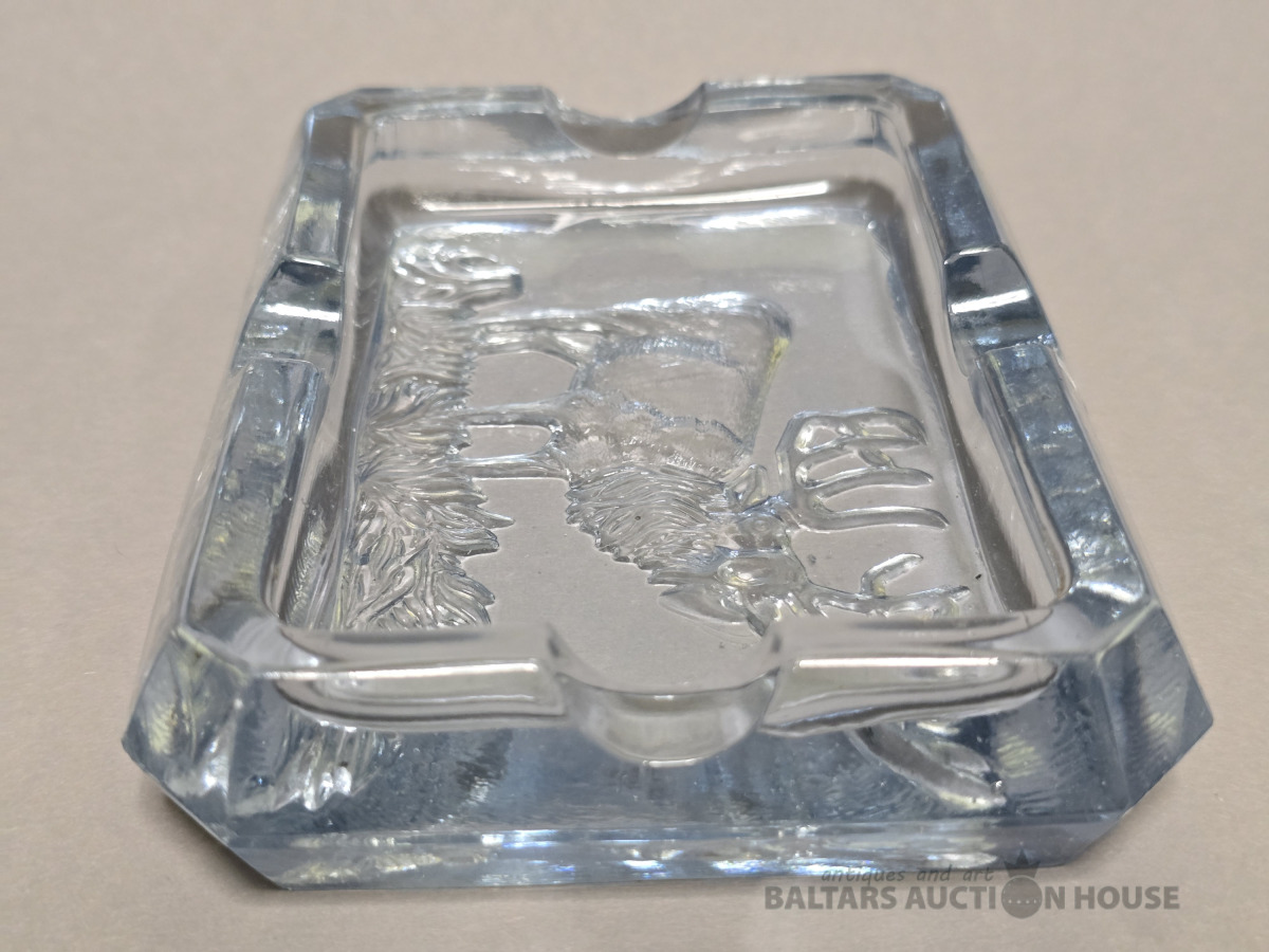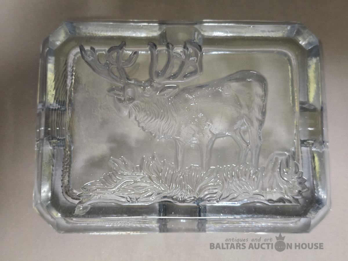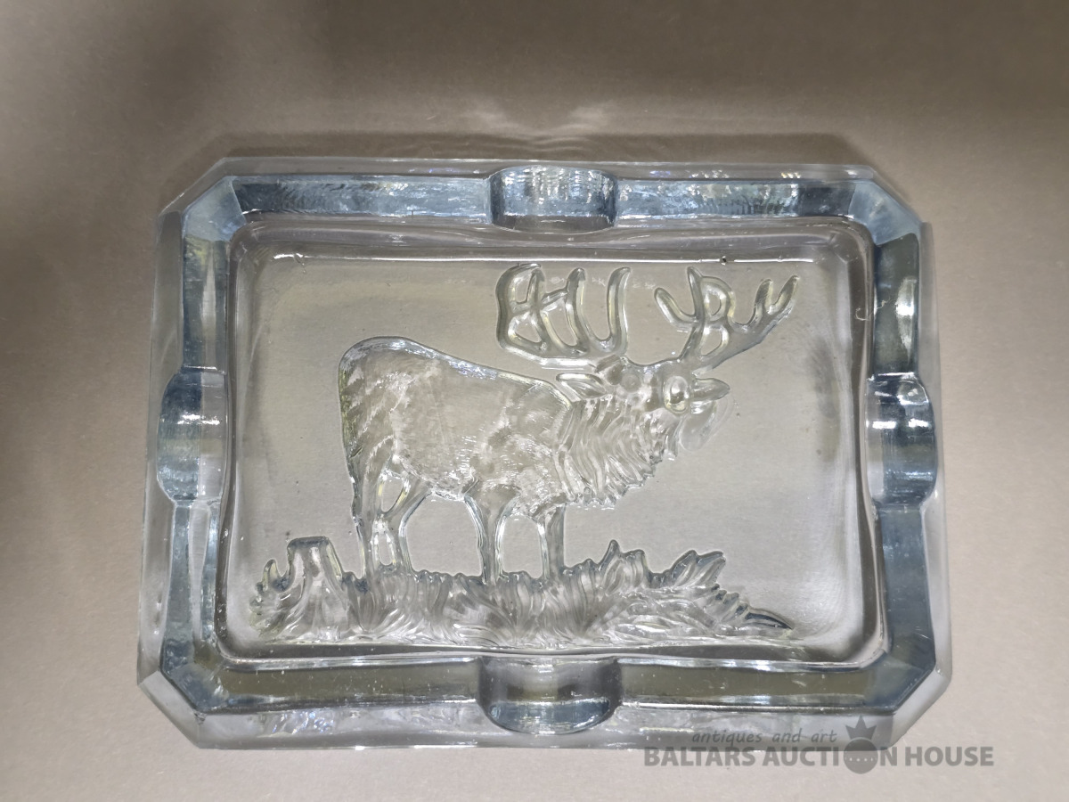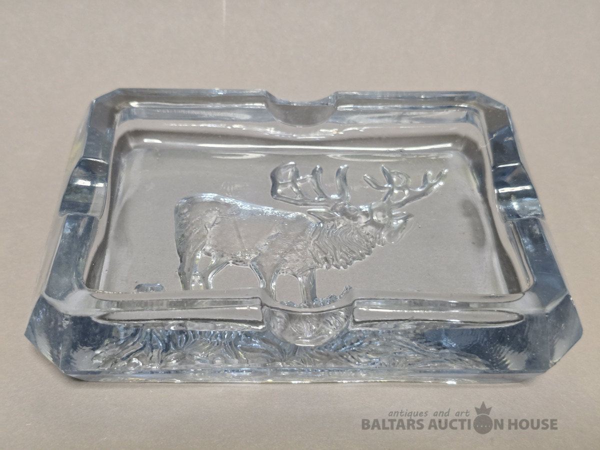 Krāsainā stikla pelnutrauks Briedis. Iļģuciema stikla fabrika. Vienkrāsains stikls,slīpējums.