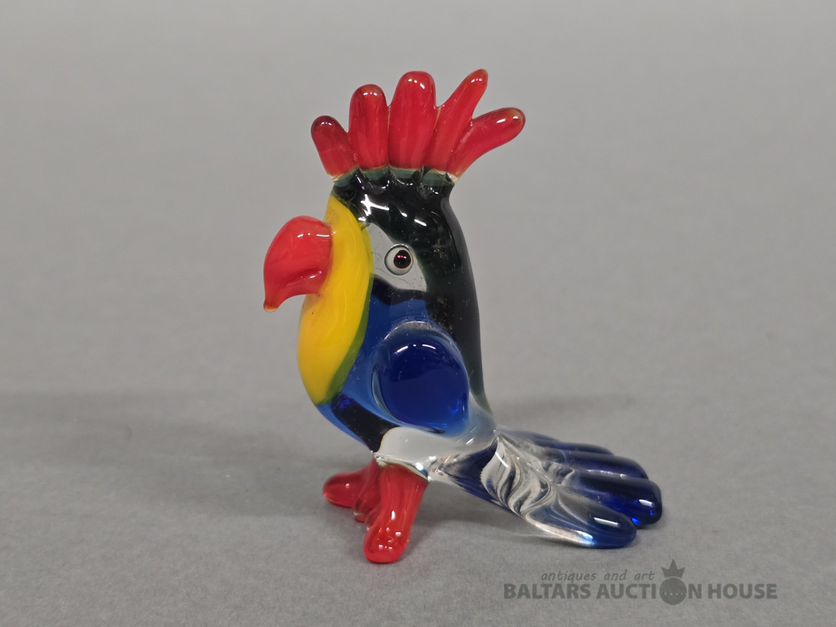 Krāsainā stikla figūra.Papagailis.Roku darbs.