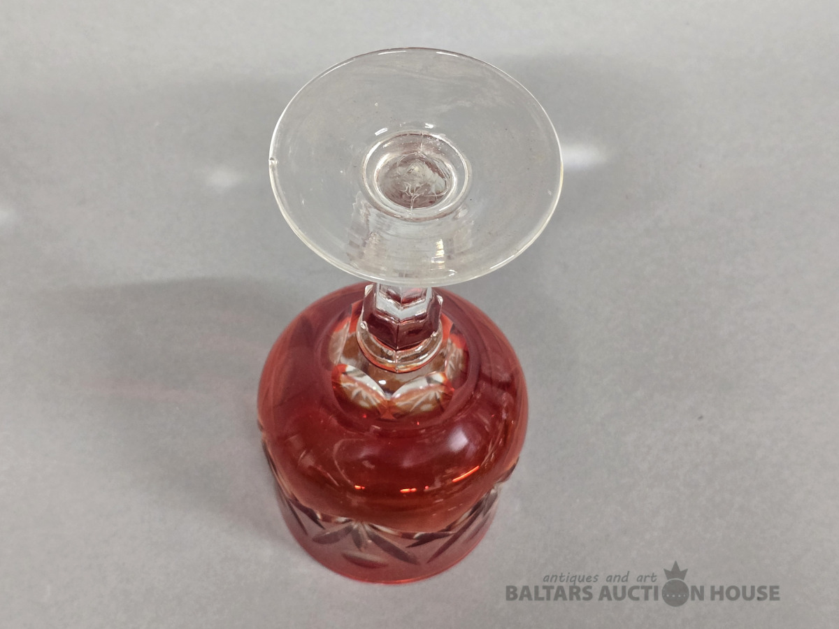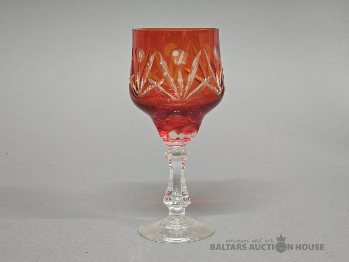 Krāsainā stikla glāze. Iļģuciema stikla fabrika. H 19 cm. Divkrāsains stikls,slīpējums.