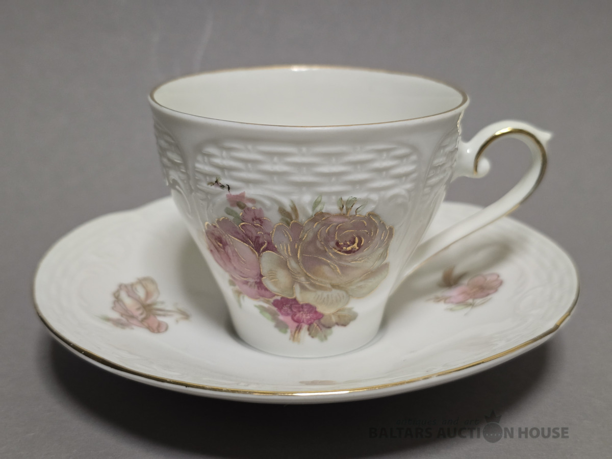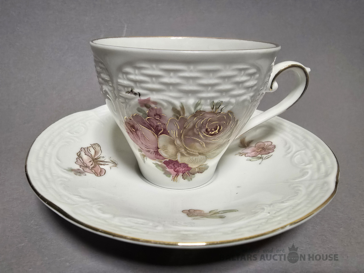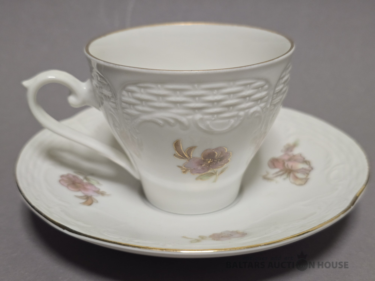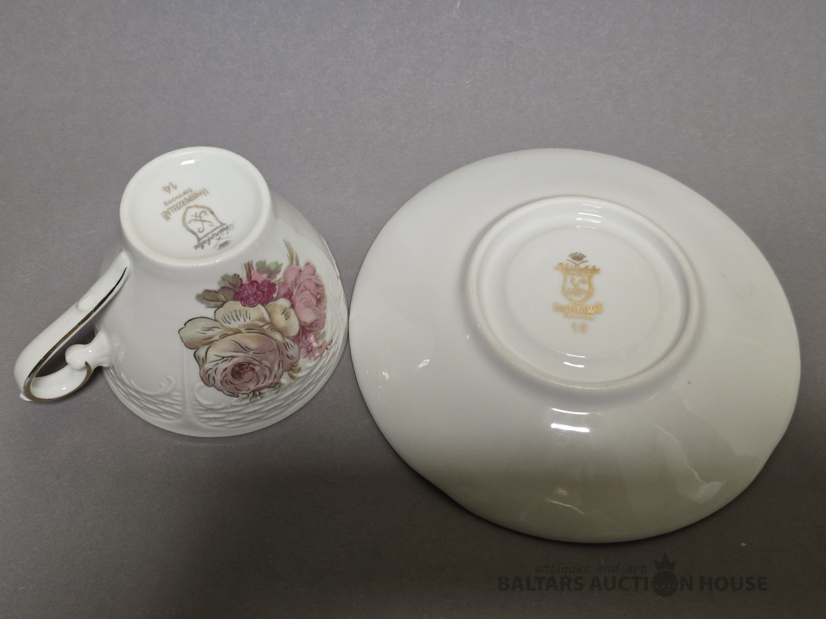 Izsmalcināts porcelāna kafijas komplekts. Roze. Roku gleznojums. Vācija.