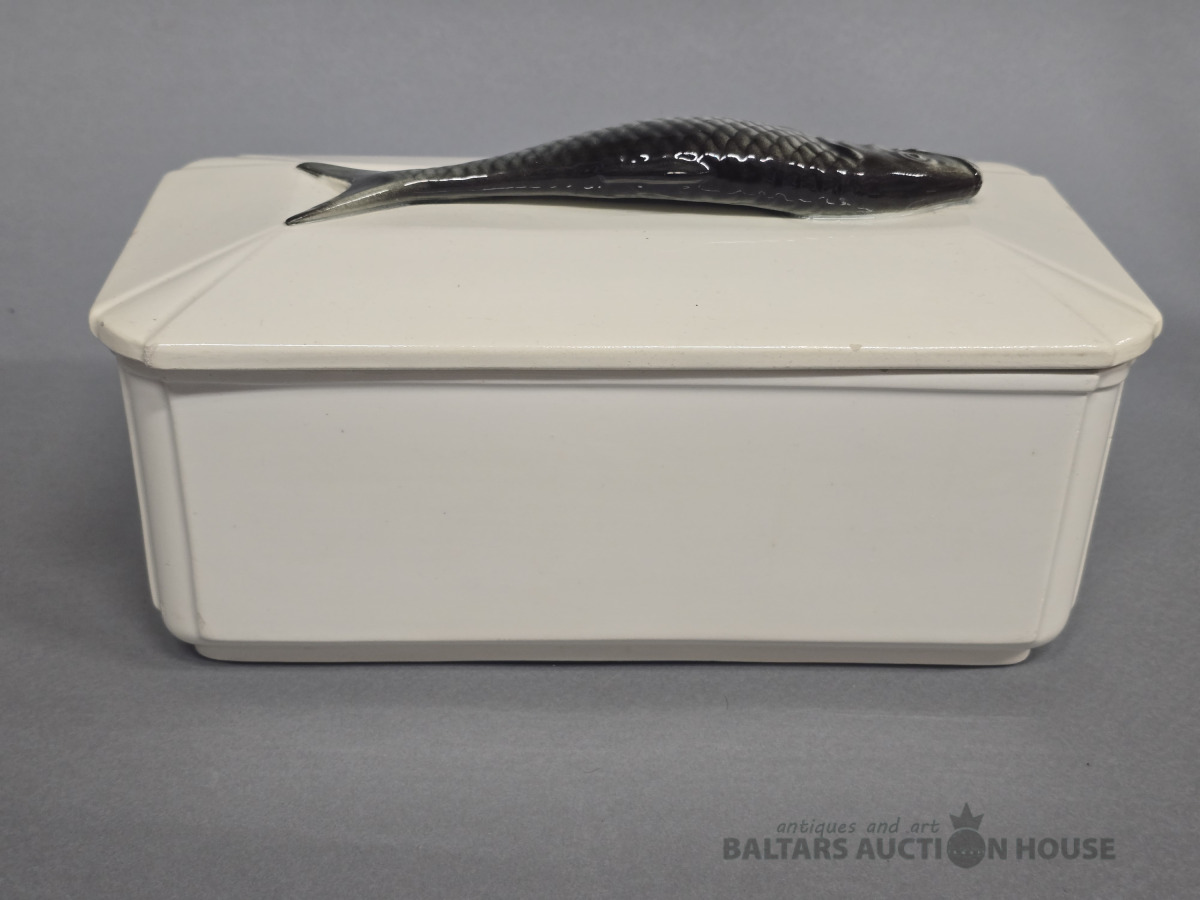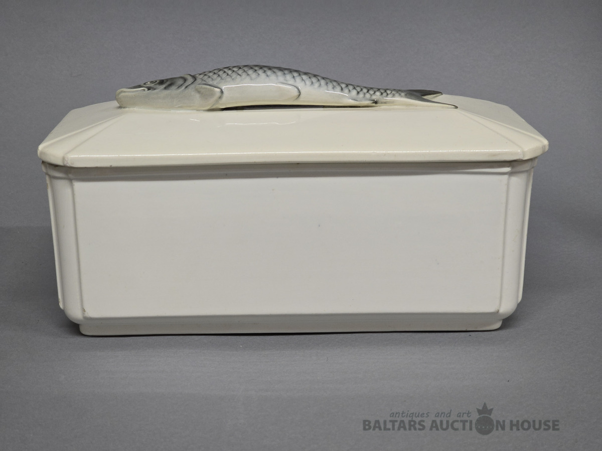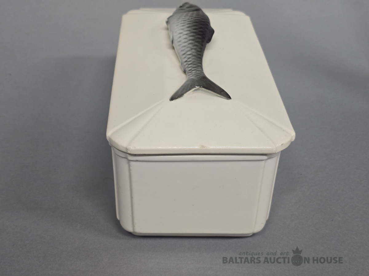 Porcelāna terīne. Zivs. Kuzņecova porcelāna fabrika?20 gs 30 tie gadi.H 14 cm.D 26 cm. Roku darbs .(defekti-foto).