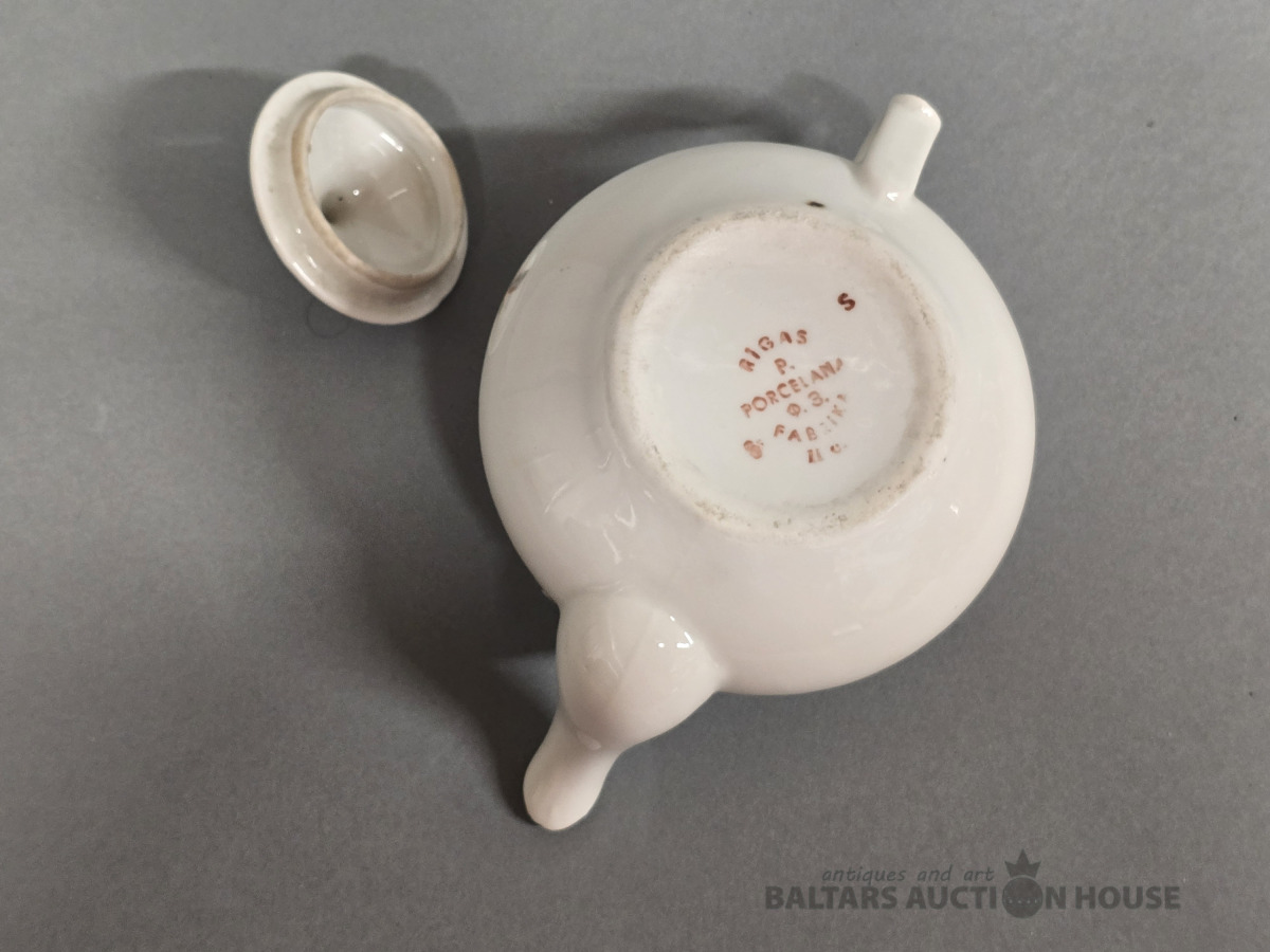 Porcelāna tējas stipruma kanniņa Rīgas porcelāna fabrika. Roku gleznojums. 20gs.