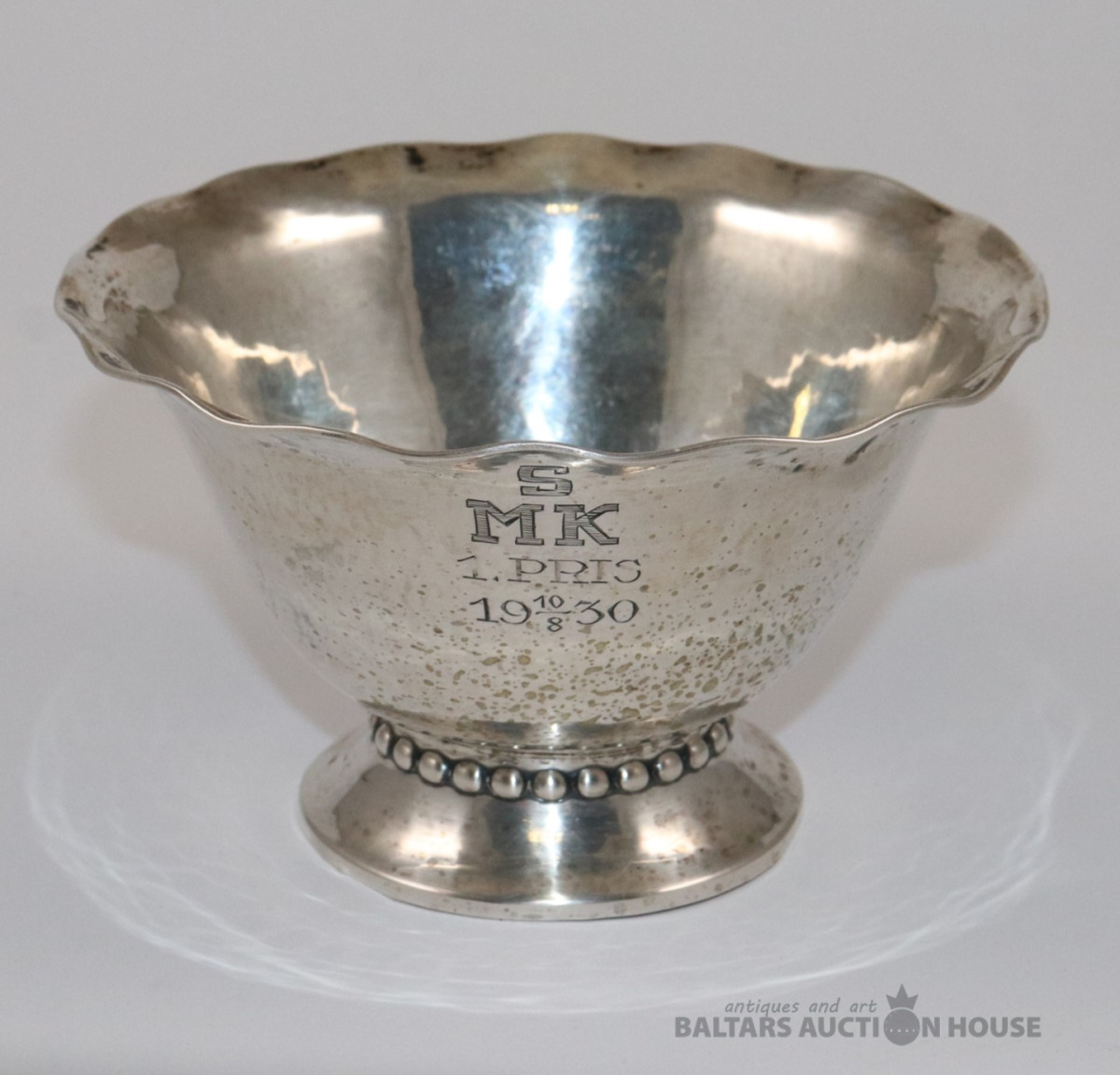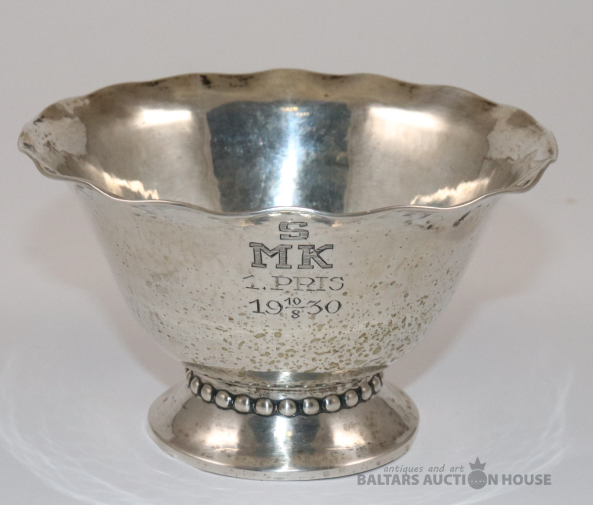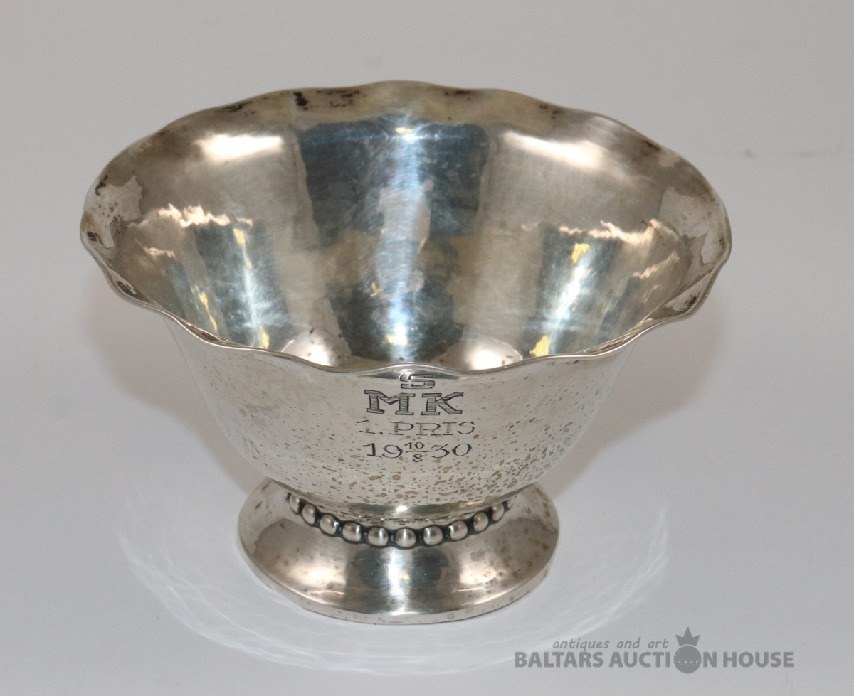 Sporta kauss SMK 1.PRIS. 10/8 1930. Sudrabs 800. Svars 84,97 g. Ar proves noteikšanas birku, skatīt foto.