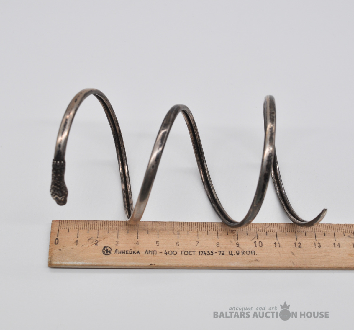 Sudrabu saturoša metāla aproce "Čūska". Svars 28.1 grami.