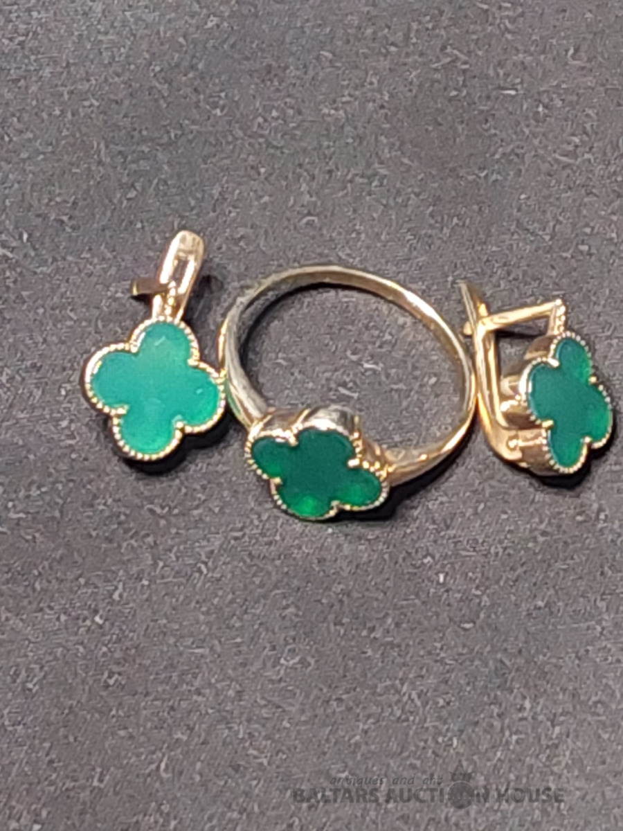 Juvelierizstrādājumu komplekts gredzens ar auskariem 925 prove, zeltījums, Urālā ahāts. Krievija., Jauns.