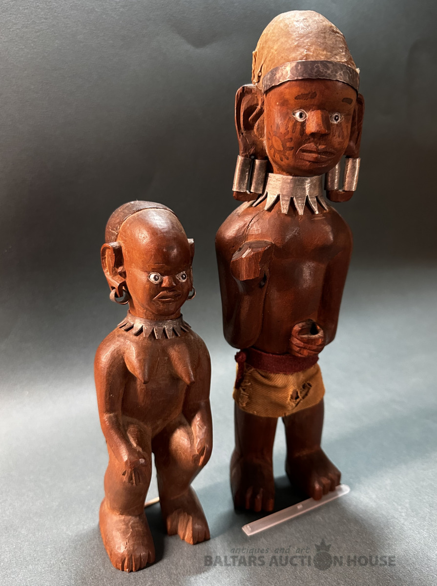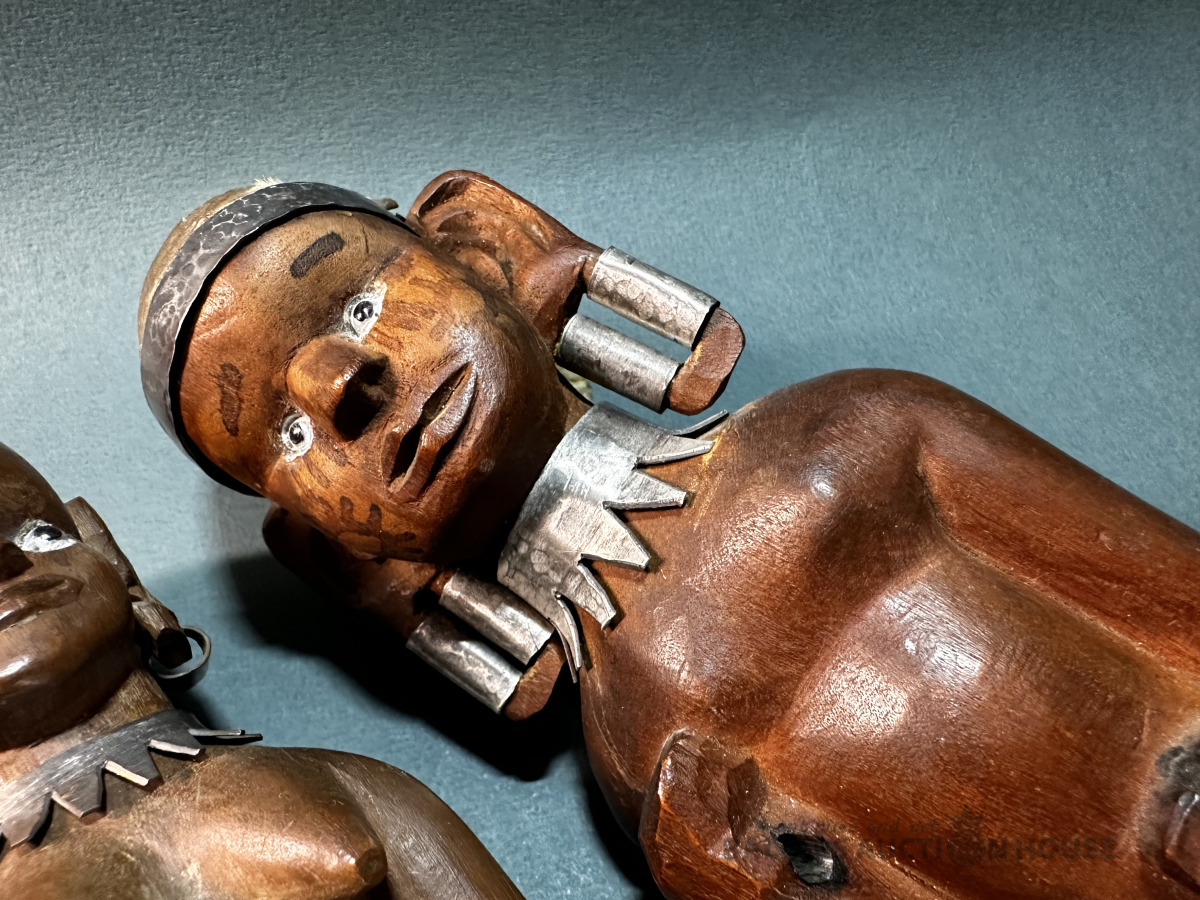 Antīkas KOKA FIGŪRIŅAS, roku darbs, sudraba apkalums ap 40 grami, sudraba saturs ap 780, sarkankoks. Apskatāmas Tērbatas ielā 76.