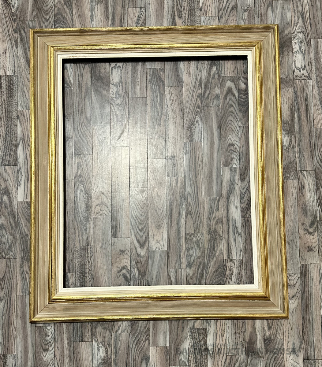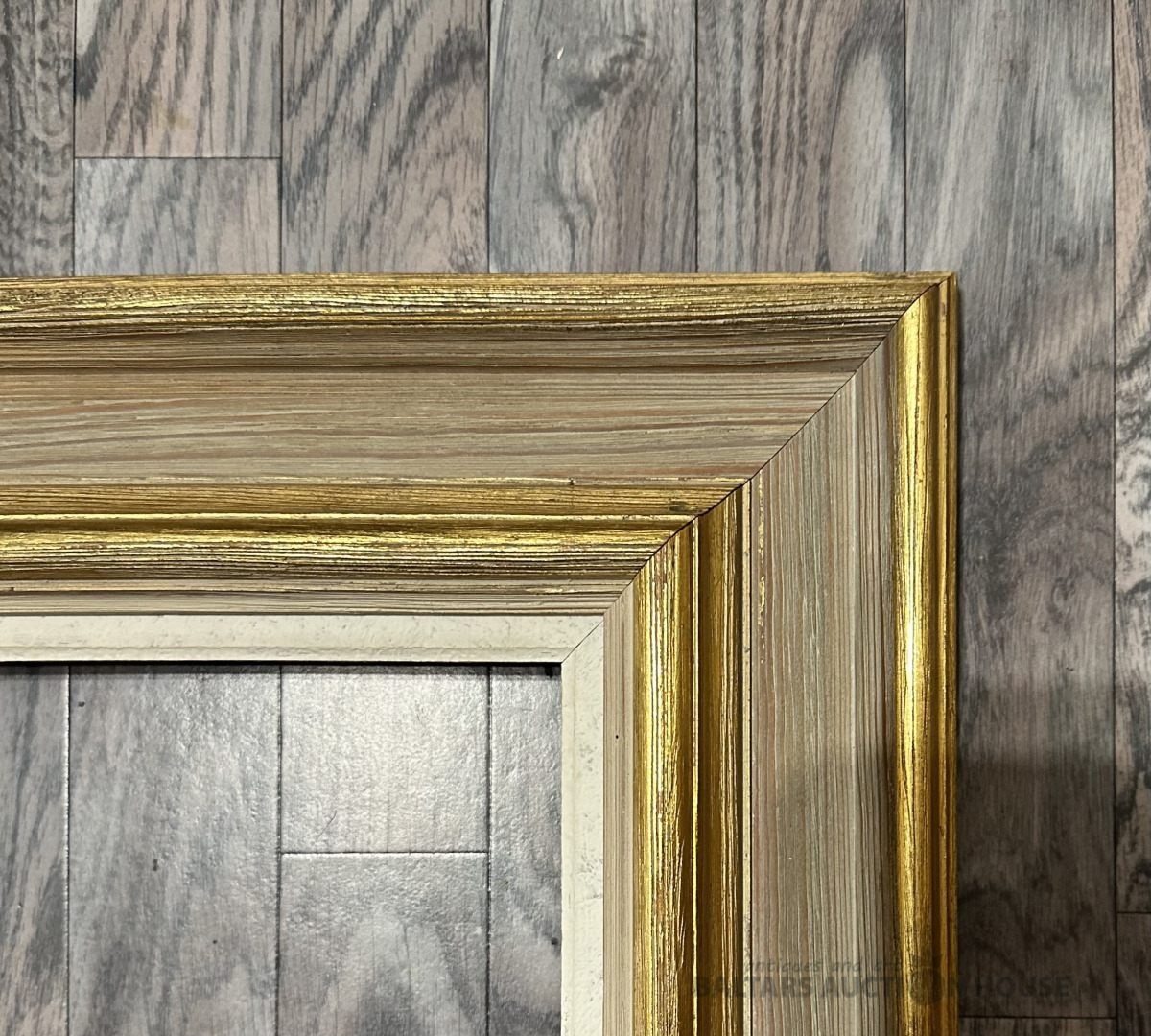 Antīks gleznas rāmis, dabīgs koks, zelta krāsa, balts ieliekams iekšrāmītis, paredzēts gleznai ar lielumu 64x53 cm, ar balto iekšrāmi gleznai ar lielumu 61.5x50 cm, rāmja profils 90x40 mm.
