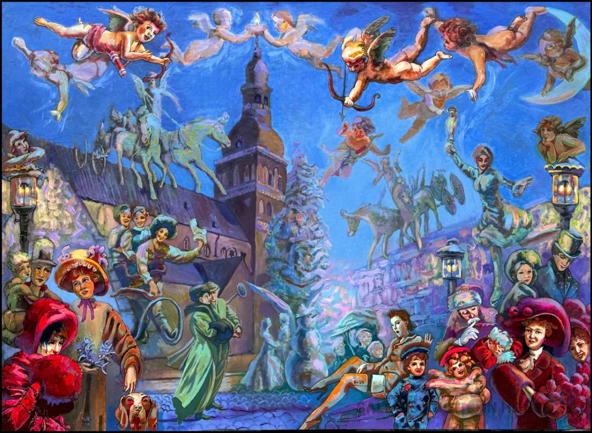 Dags Vidulejs. Ziemassvētku pasaka Doma laukumā. Audekls, jaukta tehnika, akrils, eļļa. 110x 150 cm. 2025. g.