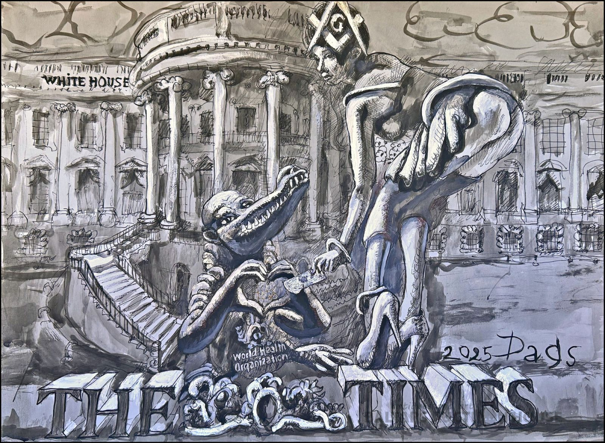 Dags Vidulejs. Globalizācija. Papīrs, tinte, akrils. 50x 70 cm. 2025. g.