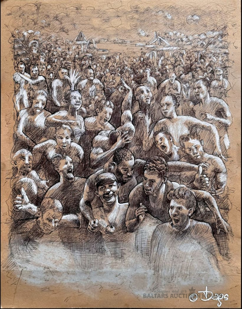Dags Vidulejs. Maratons. Papīrs, tinte, akrils. 70x 50 cm. 2025. g.