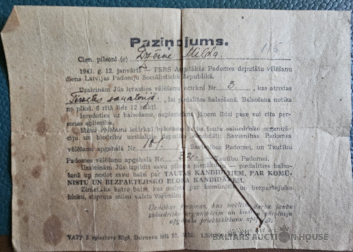 Paziņojums. Uzaicinājums uz vēlšanām.1941.g.