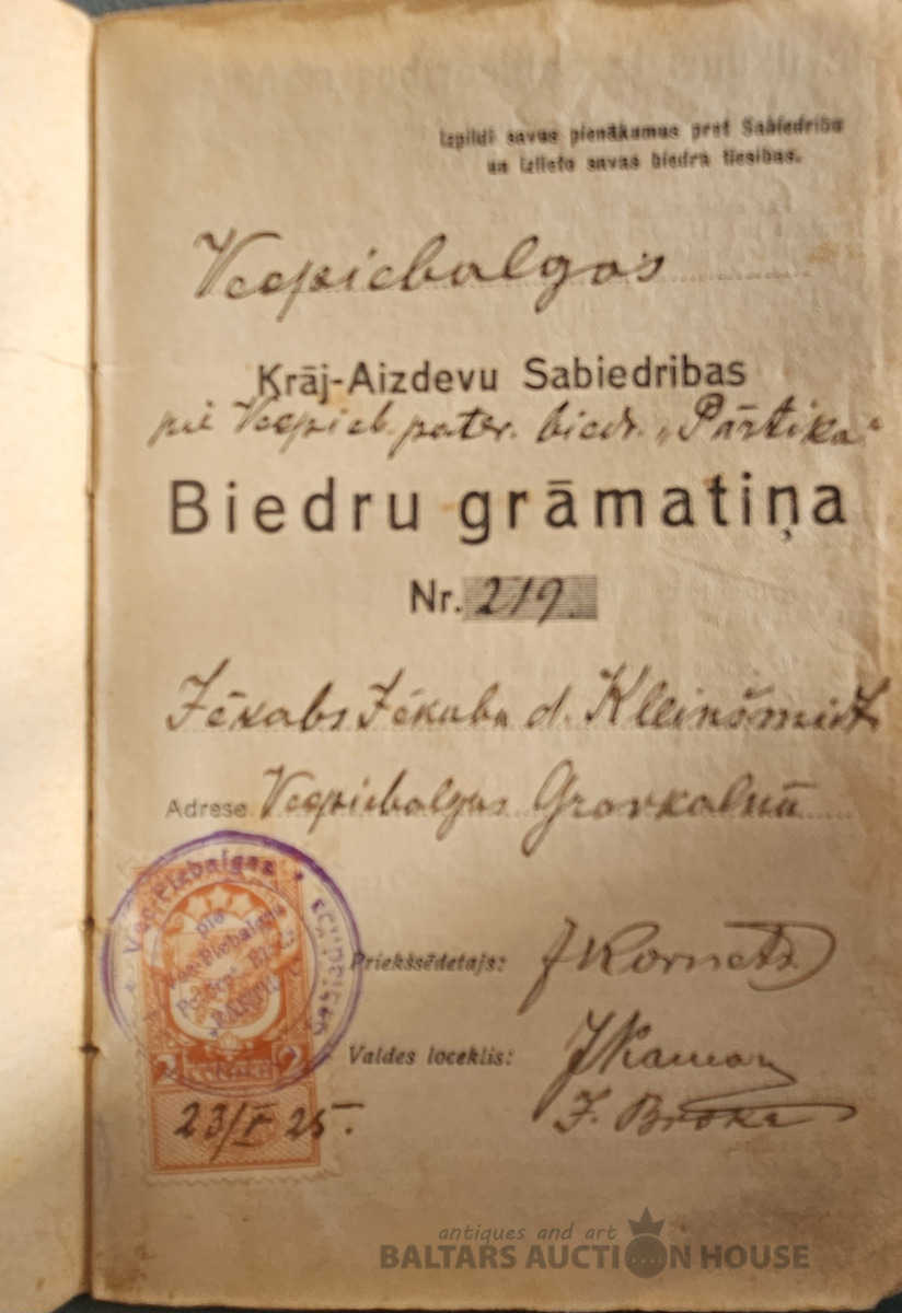 Vepiebalgas Krāj-Aizdevu sabiedribas biedru grāmatiņa