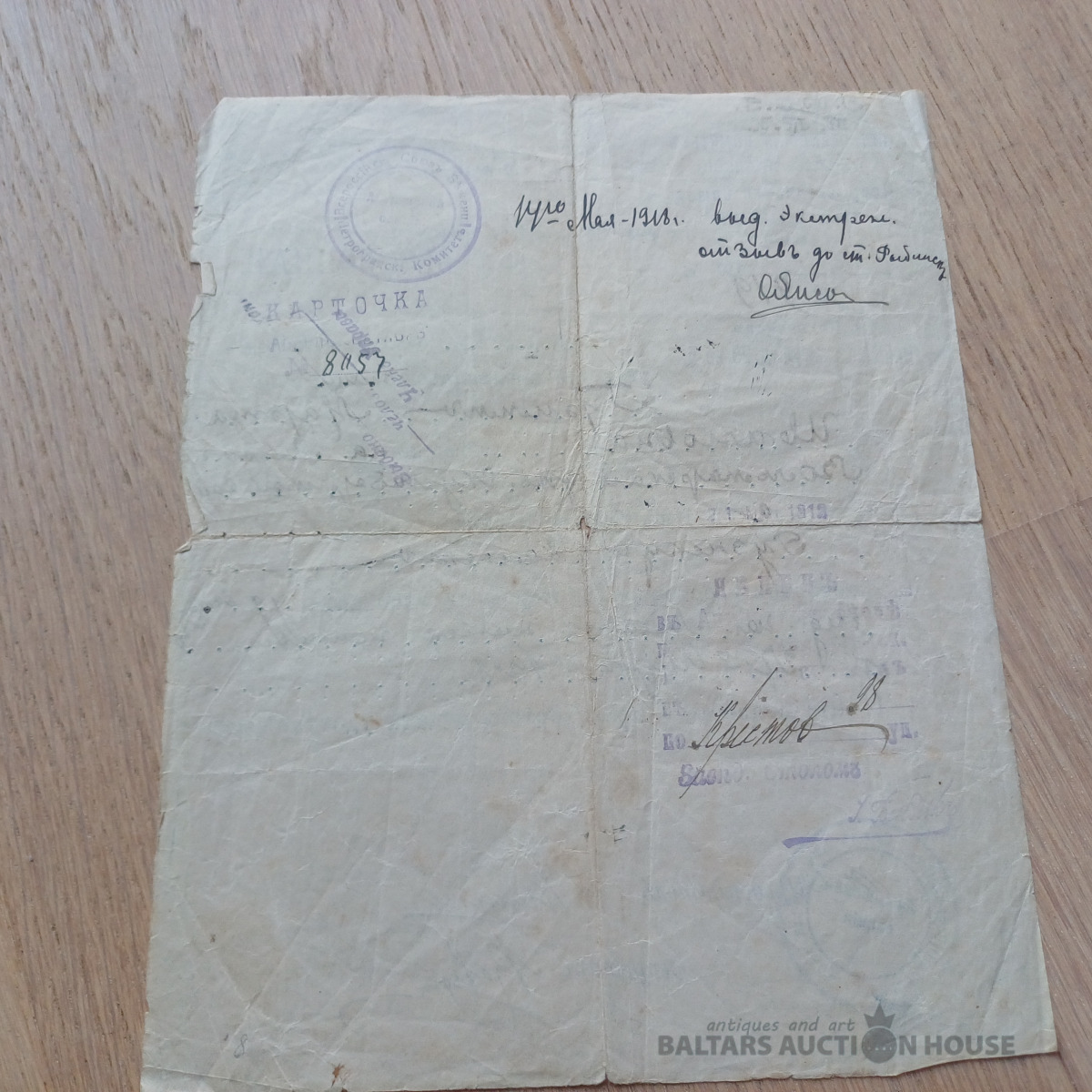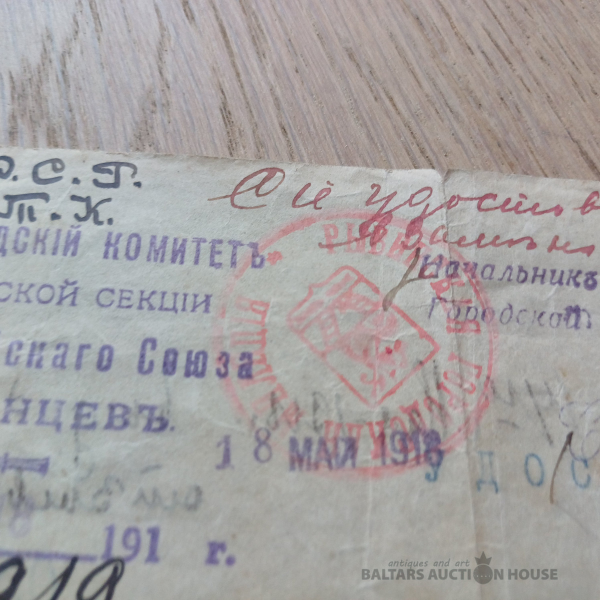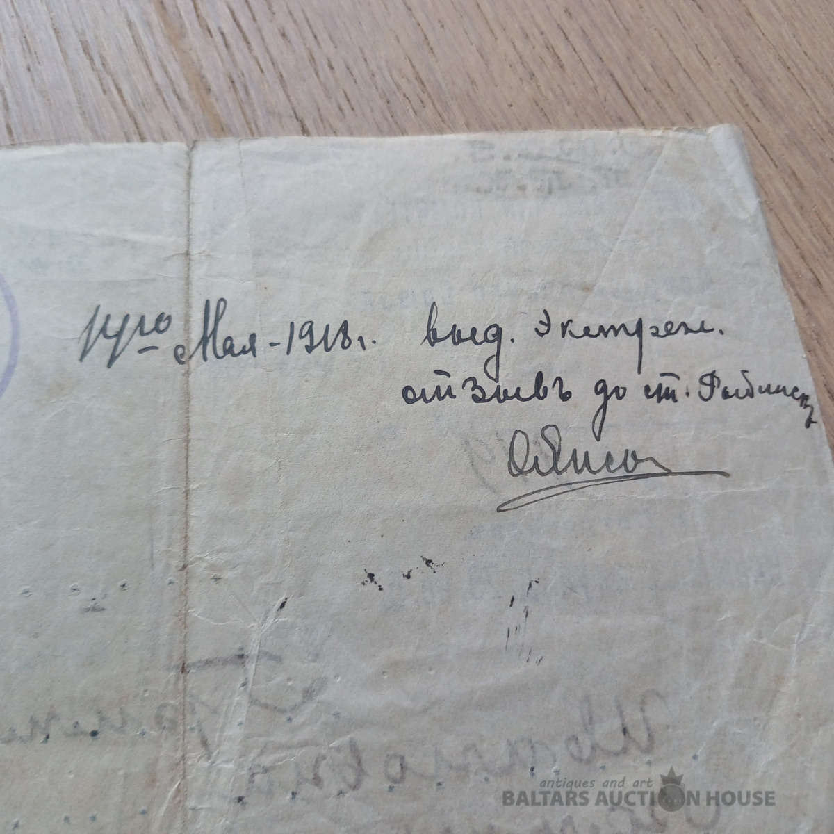 Rets dokuments –laikmeta liecība. Dzejnieces, rakstnieces MARTAS GRIMMAS (МАРТА ГРИММА) dokuments – 1918. g. maija ceļošanas dokuments – Viskrievijas bēgļu savienība Latvijas sekcija Petrogradā. Ar priekšsēdētāja un sekretāra parakstiem