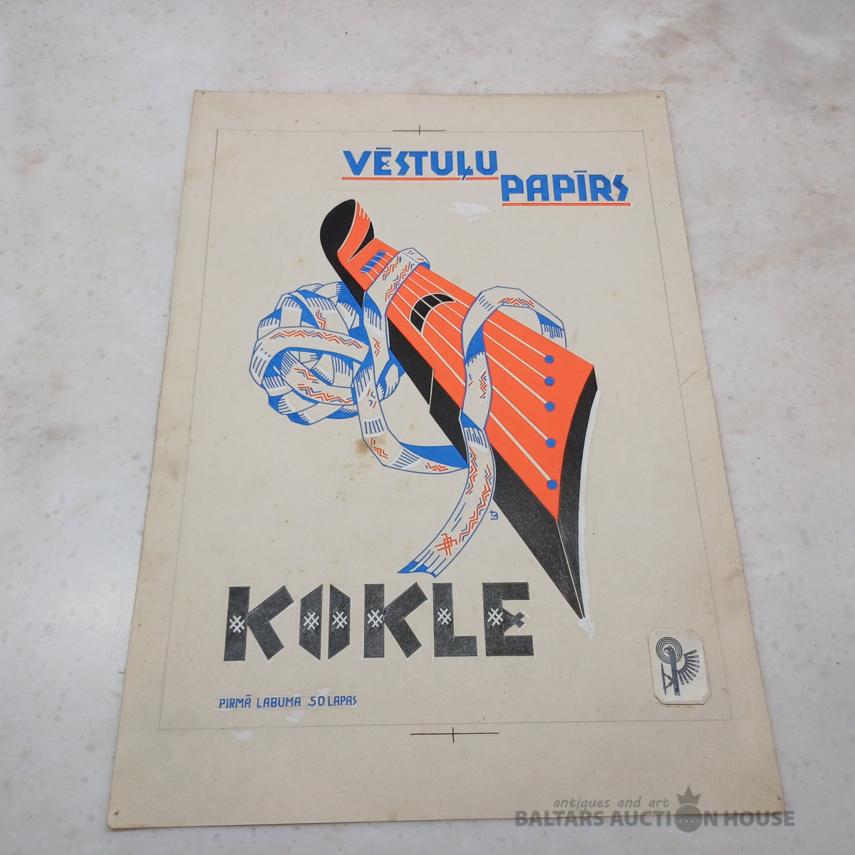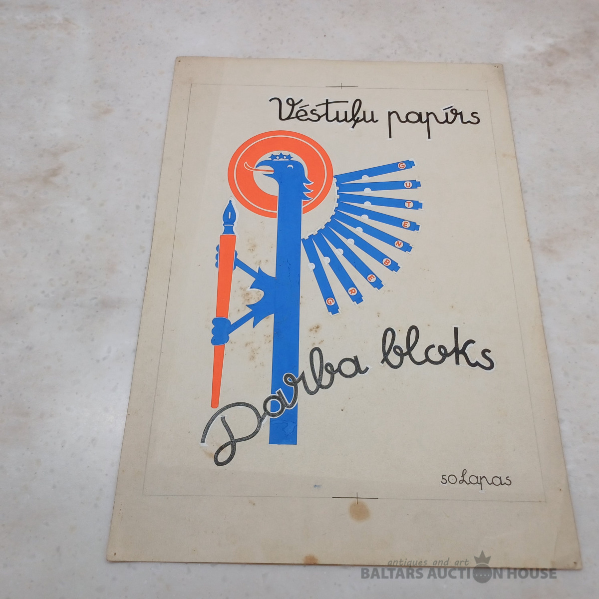 Oriģinālzīmējums 245x345 mm. "Gutenberg–Riga" pirmā labuma vēstuļu papīrs KOKLE.