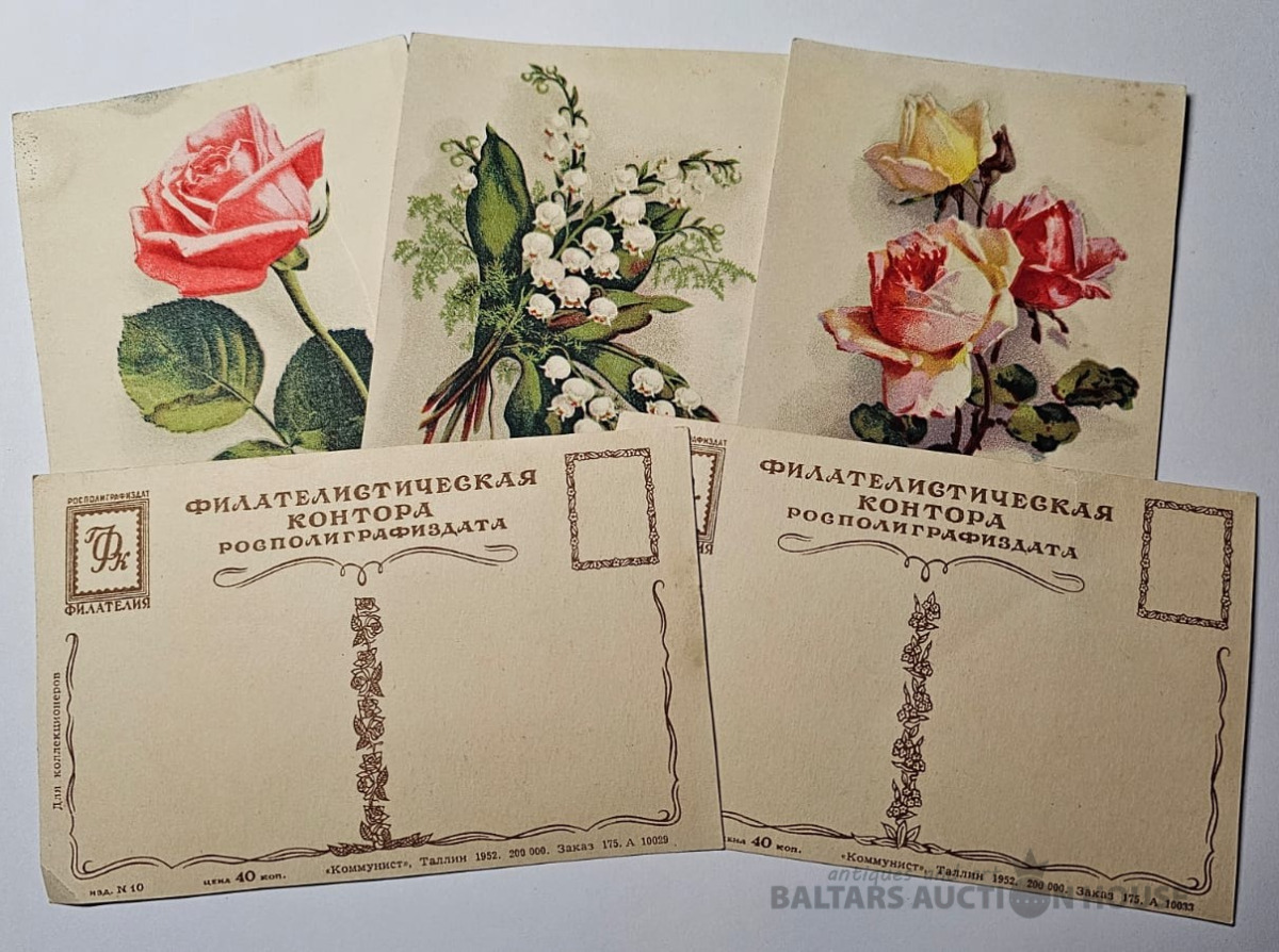 Igaunija/Estonia Ziedu pastkartes kolekcija, 1952. g., retums, 5gab