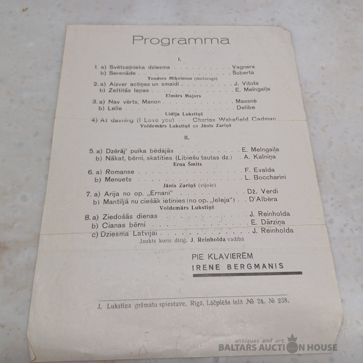 91. MĀKSLAS DARBU IZSOLE NO 6. FEBRUĀRA - 10. FEBRUĀRIM 06.02.2026 90. MĀKSLAS DARBU IZSOLE NO 9. JANVĀRA - 13. JANVĀRIM 09.01.2026 89. MĀKSLAS DARBU IZSOLE NO 21. NOVEMBRA - 25. NOVEMBRIM 21.11.2025 88. MĀKSLAS DARBU IZSOLE NO 24. OKTOBRA - 28. OKTOBRIM 24.10.2025 87. MĀKSLAS DARBU IZSOLE NO 26. SEPTEMBRA - 30. SEPTEMBRIM 26.09.2025 86. MĀKSLAS DARBU IZSOLE NO 22. AUGUSTA - 26. AUGUSTAM 22.08.2025 85. MĀKSLAS DARBU IZSOLE NO 18. JŪLIJA - 22. JŪLIJAM 18.07.2025 84. MĀKSLAS DARBU IZSOLE NO 13. JŪNIJA - 17. JŪNIJAM 13.06.2025 83. MĀKSLAS DARBU IZSOLE NO 9. MAIJA - 13. MAIJAM 09.05.2025 82. MĀKSLAS DARBU IZSOLE NO 4. APRĪĻA - 8. APRĪLIM 04.04.2025 81. MĀKSLAS DARBU IZSOLE NO 14. MARTA - 18. MARTAM 14.03.2025 57. MĀKSLAS DARBU IZSOLE NO 7. FEBRUĀRA - 11. FEBRUĀRIM 07.02.2025 56. MĀKSLAS DARBU IZSOLE NO 10. JANVĀRA - 14. JANVĀRIM 10.01.2025 78. MĀKSLAS DARBU IZSOLE NO 15.NOVEMBRA LĪDZ 19.NOVEMBRIM 15.11.2024 77. MĀKSLAS DARBU IZSOLE NO 27.SEPTEMBRA LĪDZ 1.OKTOBRIM 27.09.2024 76. MĀKSLAS DARBU IZSOLE NO 23. AUGUSTA LĪDZ 27. AUGUSTAM 23.08.2024 75. MĀKSLAS DARBU IZSOLE NO 5. JŪLIJA LĪDZ 9. JŪLIJAM 05.07.2024 74. MĀKSLAS DARBU IZSOLE NO 24. MAIJA LĪDZ 28. MAIJAM 24.05.2024 73. MĀKSLAS DARBU IZSOLE NO 26. APRĪĻA LĪDZ 30. APRĪLIM 26.04.2024 72. MĀKSLAS DARBU IZSOLE NO 8. MARTA LĪDZ 12. MARTAM 08.03.2024 71. MĀKSLAS DARBU IZSOLE NO 9. FEBRUĀRA - 13. FEBRUĀRIM 09.02.2024 70. MĀKSLAS DARBU IZSOLE NO 5. JANVĀRA - 9. JANVĀRIM 05.01.2024 69. MĀKSLAS DARBU IZSOLE NO 8. DECEMBRA - 12. DECEMBRIM. 08.12.2023 68. MĀKSLAS DARBU IZSOLE NO 3.NOVEMBRA - 7. NOVEMBRIM 03.11.2023 67. MĀKSLAS DARBU IZSOLE NO 6 OKTOBRA - 10. OKTOBRIM 06.10.2023 66. MĀKSLAS DARBU IZSOLE NO 8 SEPTEMBRA - 12. SEPTEMBRIM 08.09.2023 66. MĀKSLAS DARBU IZSOLE NO 11. AUGUSTA - 15. AUGUSTAM 11.08.2023 65. MĀKSLAS DARBU IZSOLE NO 7. JŪLIJA - 11. JŪLIJAM 07.07.2023 64. MĀKSLAS DARBU IZSOLE NO 26. MAIJA - 30. MAIJAM 26.05.2023 63. MĀKSLAS DARBU IZSOLE NO 21. APRĪĻA - 25. APRĪLIM 21.04.2023 62. MĀKSLAS DARBU IZSOLE NO 17. MARTA - 21. MARTAM 17.03.2023 61. MĀKSLAS DARBU IZSOLE NO 27. JANVĀRA - 31. JANVĀRIM 27.01.2023 60. MĀKSLAS DARBU IZSOLE NO 9. DECEMBRA - 13. DECEMBRIM 09.12.2022 59. MĀKSLAS DARBU IZSOLE NO 4. NOVEMBRA - 8. NOVEMBRIM 04.11.2022 58. MĀKSLAS DARBU IZSOLE NO 7. OKTOBRA - 11. OKTOBRIM 07.10.2022 57. MĀKSLAS DARBU IZSOLE NO 9. SEPTEMBRA - 13. SEPTEMBRIM 09.09.2022 56. MĀKSLAS DARBU IZSOLE NO 15. AUGUSTA - 21. AUGUSTAM 15.08.2022 55. MĀKSLAS DARBU IZSOLE NO 8. JŪLIJA - 12. JŪLIJAM 08.07.2022 54. MĀKSLAS DARBU IZSOLE NO 3. JŪNIJA - 7. JŪNIJAM 03.06.2022 53. MĀKSLAS DARBU IZSOLE NO 6. MAIJA - 10. MAIJAM 06.05.2022 52. MĀKSLAS DARBU IZSOLE NO 8. APRĪĻA - 12. APRĪLIM 08.04.2022 51. MĀKSLAS DARBU IZSOLE NO 4. MARTA - 8. MARTAM 04.03.2022 50. MĀKSLAS DARBU IZSOLE NO 4. FEBRUĀRA - 8. FEBRUĀRIM 04.02.2022 49. MĀKSLAS DARBU IZSOLE NO 7. JANVĀRA - 11. JANVĀRIM 07.01.2022 48. MĀKSLAS DARBU IZSOLE NO 26. NOVEMBRA - 30. NOVEMBRIM 26.11.2021 47. MĀKSLAS DARBU IZSOLE NO 22. OKTOBRA - 27. OKTOBRIM 22.10.2021 46. MĀKSLAS DARBU IZSOLE NO 24. SEPTEMBRA - 29. SEPTEMBRIM 24.09.2021 45. MĀKSLAS DARBU IZSOLE NO 20. AUGUSTA - 24. AUGUSTAM 20.08.2021 44. MĀKSLAS DARBU IZSOLE NO 23. JŪLIJA - 27. JŪLIJAM 23.07.2021 1. MĀKSLAS DARBU IZSOLE NO 22. JŪNIJA - 30. JŪNIJAM 22.06.2021 42. MĀKSLAS DARBU IZSOLE NO 4. JŪNIJA - 28. JŪNIJAM 04.06.2021 41. MĀKSLAS DARBU IZSOLE NO 21. MAIJA - 25. MAIJAM 21.05.2021 40. MĀKSLAS DARBU IZSOLE NO 8. MAIJA - 12. MAIJAM 08.05.2021 39. MĀKSLAS DARBU IZSOLE NO 23. APRĪĻA - 27. APRĪLIM 23.04.2021 38. MĀKSLAS DARBU IZSOLE NO 9. APRĪĻA - 13. APRĪLIM 09.04.2021 37. MĀKSLAS DARBU IZSOLE NO 26. MARTA - 30. MARTAM 26.03.2021 36. MĀKSLAS DARBU IZSOLE NO 13. MARTA - 17. MARTAM_ 2021 13.03.2021 35. MĀKSLAS DARBU IZSOLE NO 28. FEBRUĀRA - 3. MARTAM_ 2021. 26.02.2021 34. MĀKSLAS DARBU IZSOLE NO 22. JANVĀRA - 26. JANVĀRIM_ 2021. 22.01.2021 Atkārtota Izsole 02.12.2020 33. MĀKSLAS DARBU IZSOLE NO 24. NOVEMBRA - 1. DECEMBRIM 27.11.2020 32. MĀKSLAS DARBU IZSOLE NO 30. OKTOBRA - 3. NOVEMBRIM 30.10.2020 31. MĀKSLAS DARBU IZSOLE NO 25. SEPTEMBRA - 29. SEPTEMBRIM 25.09.2020 29. MĀKSLAS DARBU IZSOLE NO 24. jūlijs - 28. jūlijs. 24.07.2020 29. MĀKSLAS DARBU IZSOLE NO 12. jūnija - 16. jūnijam. 12.06.2020 28. MĀKSLAS DARBU IZSOLE NO 22. maija - 26. maijam. 22.05.2020 27. MĀKSLAS DARBU IZSOLE NO 24. APRĪĻA LĪDZ 28. APRĪLIM 24.04.2020 26. MĀKSLAS DARBU IZSOLE NO 20. MARTA LĪDZ 24. MARTAM 20.03.2020 25. MĀKSLAS DARBU IZSOLE NO 21. FEBRUĀRA LĪDZ 25. FEBRUĀRIM 21.02.2020 24. MĀKSLAS DARBU IZSOLE NO 24. JANVĀRA LĪDZ 28. JANVĀRIM 24.01.2020 23. MĀKSLAS DARBU IZSOLE NO 13. DECEMBRA LĪDZ 17. DECEMBRIM 13.12.2019 22. MĀKSLAS DARBU IZSOLE NO 22. NOVEMBRA LĪDZ 26. NOVEMBRIM 22.11.2019 21. MĀKSLAS DARBU IZSOLE NO 25. OKTOBRA LĪDZ 29. OKTOBRIM 25.10.2019 20.MĀKSLAS DARBU IZSOLE NO 20. SEPTEMBRA LĪDZ 24. SEPTEMBRIM 20.09.2019 19.MĀKSLAS DARBU IZSOLE NO 23. AUGUSTA LĪDZ 27. AUGUSTAM. 23.08.2019 18.MĀKSLAS DARBU IZSOLE NO 26. JŪLIJA LĪDZ 30. JŪLIJAM 26.07.2019 17.MĀKSLAS DARBU IZSOLE NO 14. JŪNIJA LĪDZ 18. JŪNIJAM 14.06.2019 16.MĀKSLAS DARBU IZSOLE NO 24.MAIJA LĪDZ 28.MAIJAM. 24.05.2019 15. MĀKSLAS DARBU IZSOLES NO 17. MAIJA - 21. MAIJAM 17.05.2019 14. MĀKSLAS DARBU IZSOLES NO 26.APRĪĻA - 30.APRĪLIM 26.04.2019 PASTKARŠU IZSOLE NO 08. APRĪĻA LĪDZ 09. APRĪLIM. 08.04.2019 13. MĀKSLAS DARBU IZSOLES ATKĀRTOJUMS 29. MARTĀ 29.03.2019 13. MĀKSLAS DARBU IZSOLE NO 22. MARTA LĪDZ 26.MARTAM. 22.03.2019 12. MĀKSLAS DARBU IZSOLE NO 22.FEBRUĀRIS LĪDZ 26. FEBRUĀRIM. 22.02.2019 11. MĀKSLAS DARBU IZSOLE NO 25. JANVĀRA LĪDZ 29. JANVĀRIM 25.01.2019 10. MĀKSLAS DARBU IZSOLE NO 14. DECEMBRA LĪDZ 18. DECEMBRIM 14.12.2018 9. MĀKSLAS DARBU IZSOLE NO 25. NOVEMBRA LĪDZ 27. NOVEMBRA 25.11.2018 8. MĀKSLAS DARBU IZSOLE NO 23. NOVEMBRA LĪDZ 24. NOVEMBRIM 23.11.2018 7.MĀKSLAS DARBU IZSOLE NO 28.OKTOBRA LĪDZ 30.O