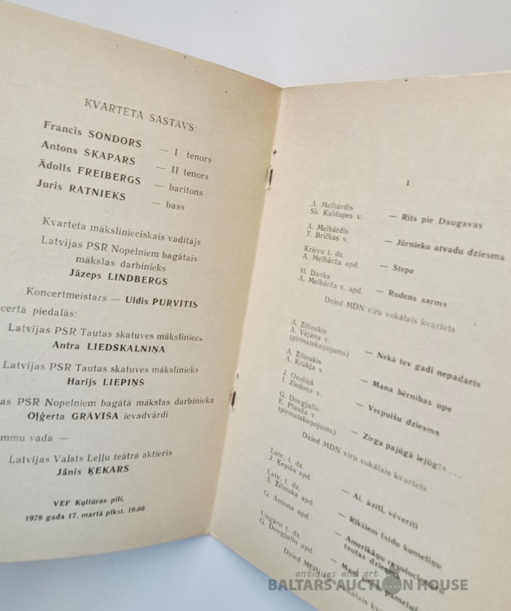 Republikas medicīnas darbinieku namā. Vīru vokālā kvarteta programma.