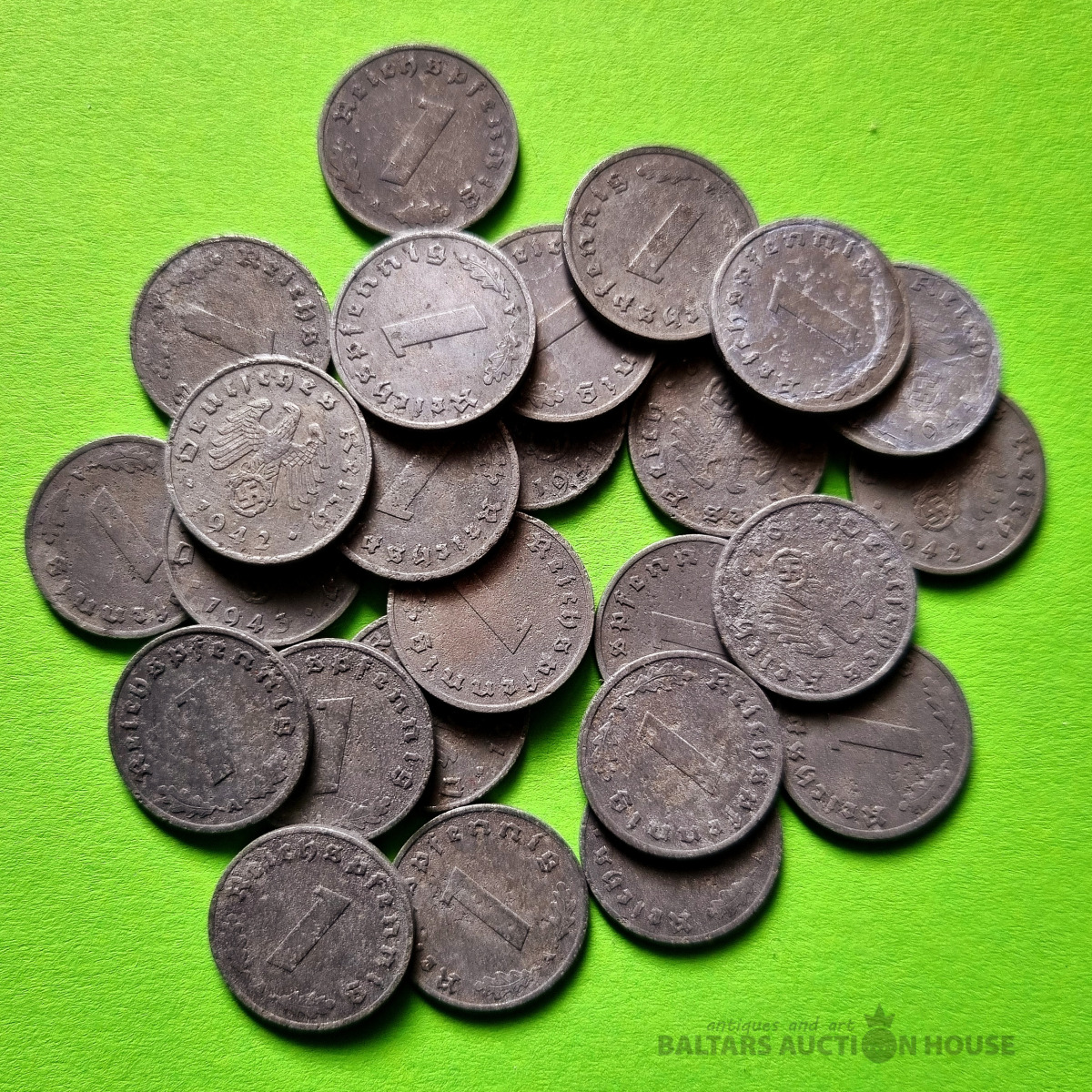 25 gabali. Vācu monētas ar 1 feniņa nominālvērtību.