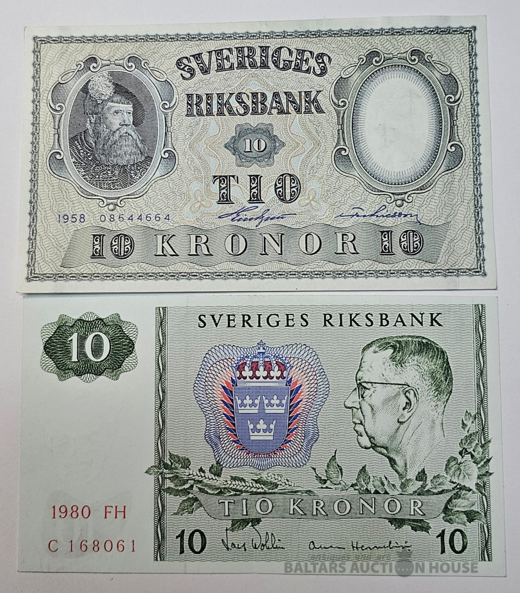 Banknotes, Zviedrija/Sweden 10 kroni 1958/1980 UNC