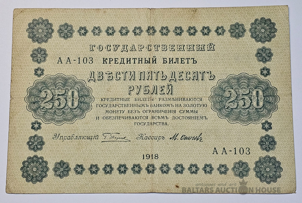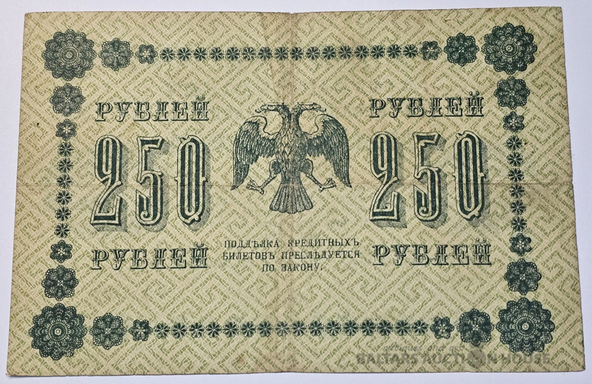 Banknote, Krievija/ Russia, 250 Rubļis 1918, VF/VF+
