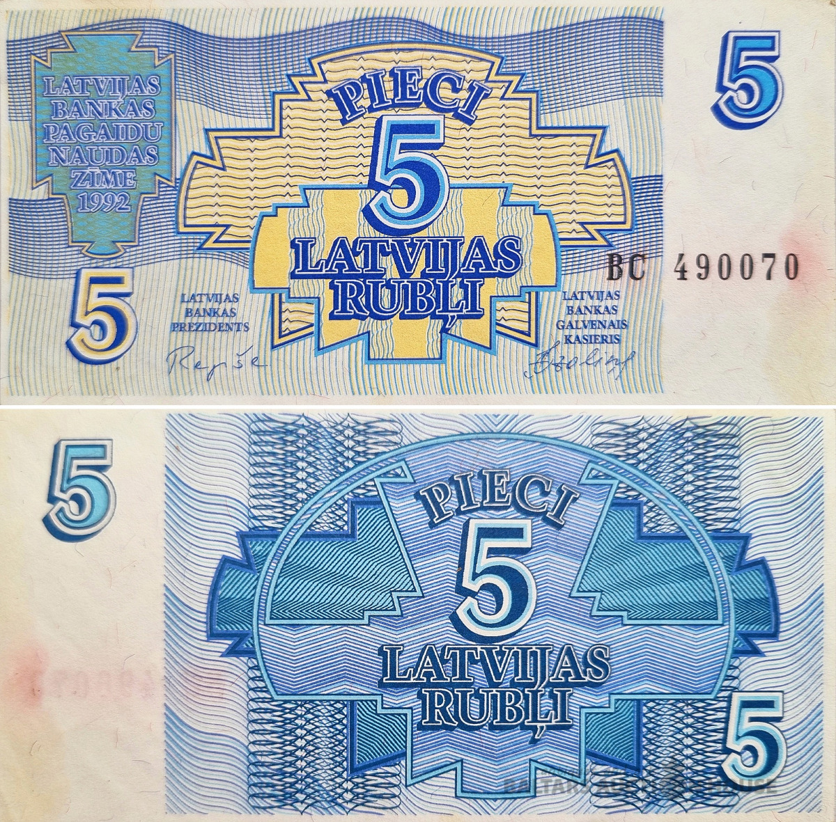 Latvijas Bankas pagaidu banknote 5 Latvijas rubļu nominālvērtībā, 1992. gads
