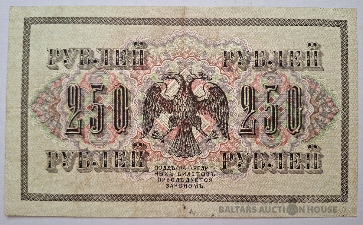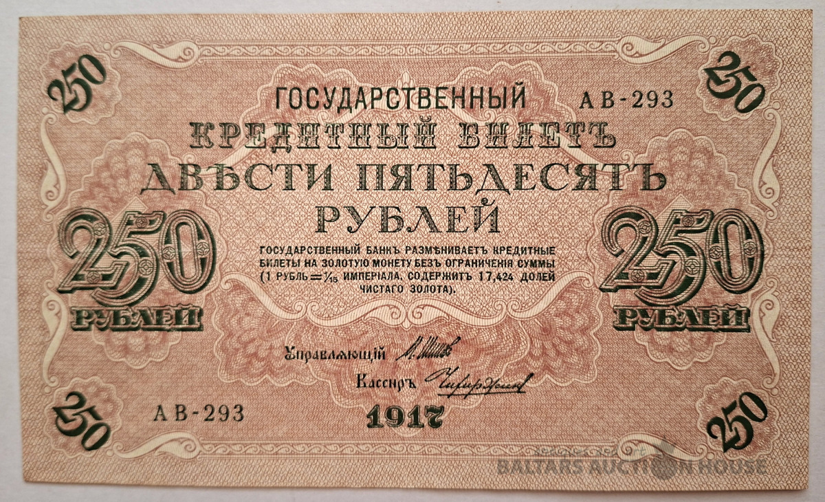 Valsts kredīta banknote 250 rubļu vērtībā, izdota 1917. gadā.