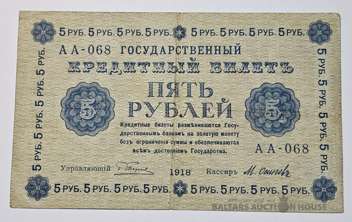 Banknote, Krievija/Russia, 5 rubli, 1918, Pagaidu Valdība