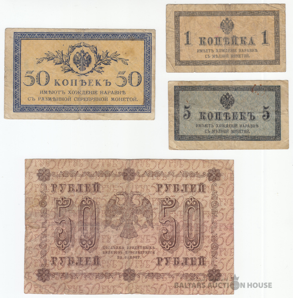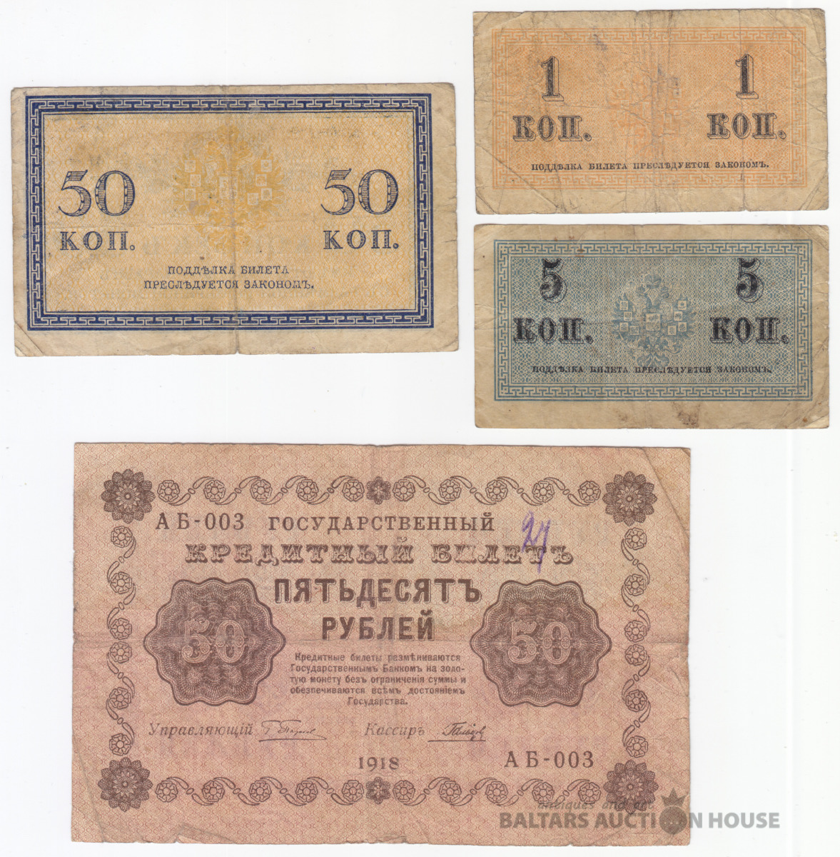 Banknotes, Krievija/Russia, 1,5, 50 kop. 1915, 50 rubli 1918.
