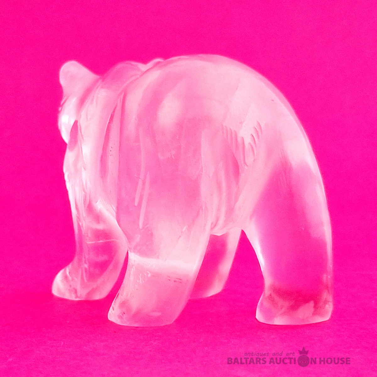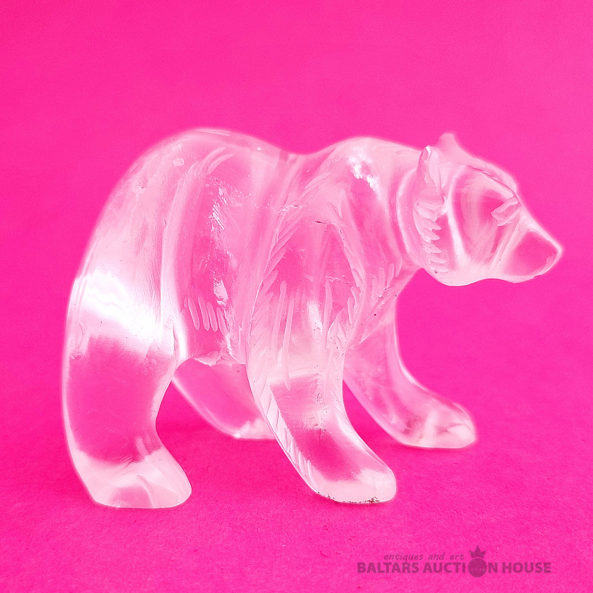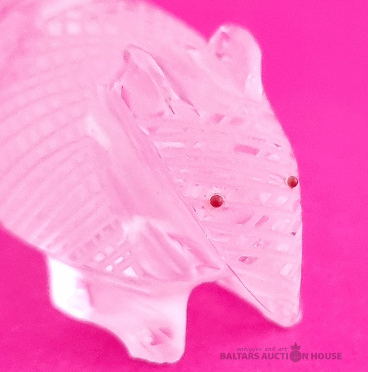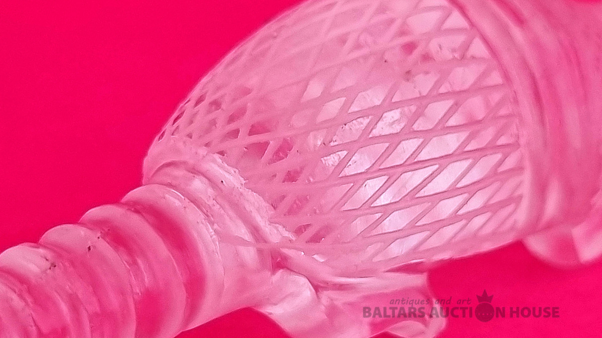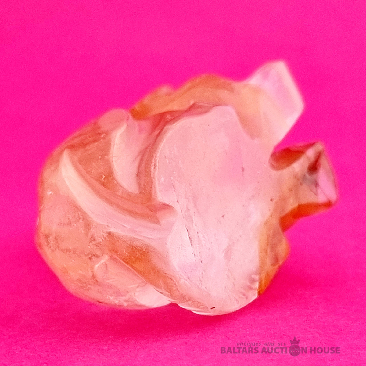 "Skudruēdāja" skulptūra, kas izgatavota no kalnu kristāla. Svars: 100 grami. Augstums: 4,5 cm. Garums: 9 cm. Eiropa.