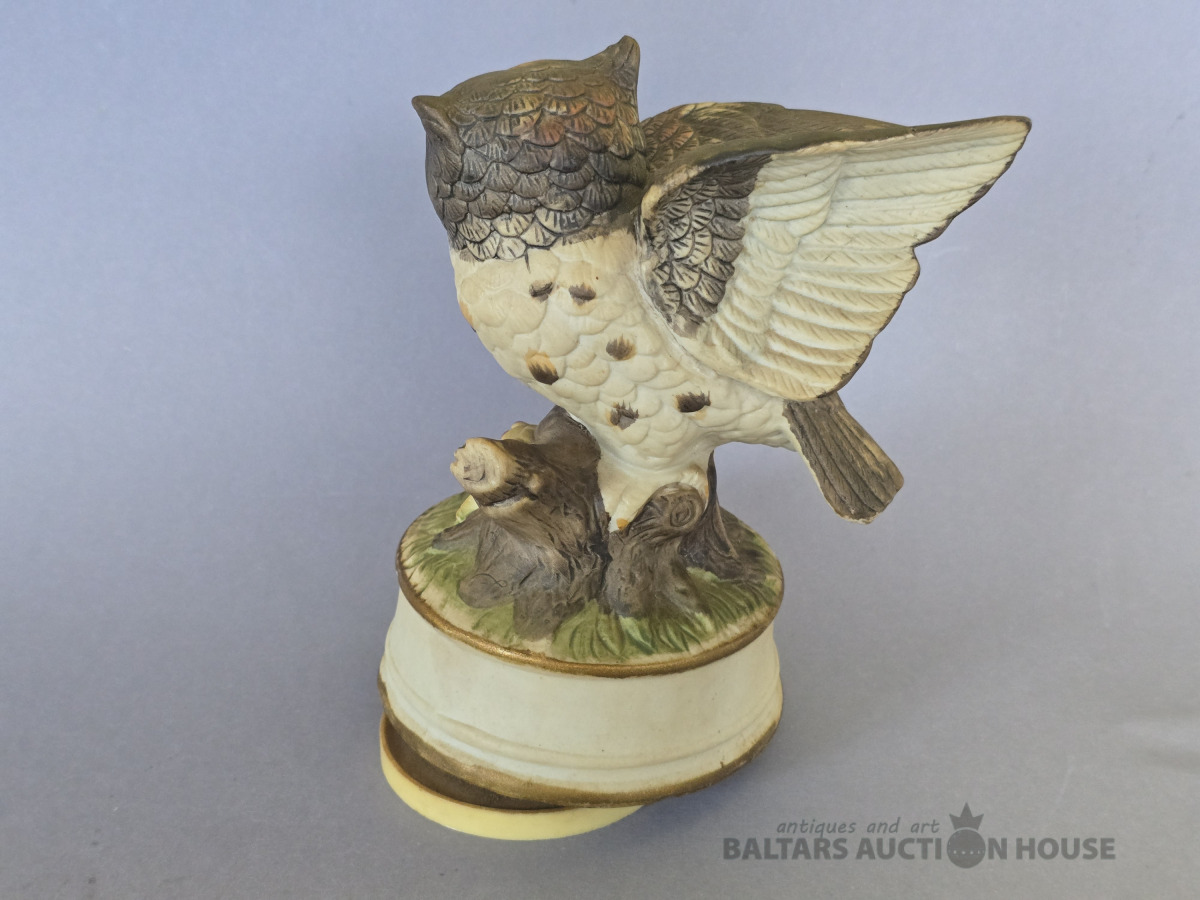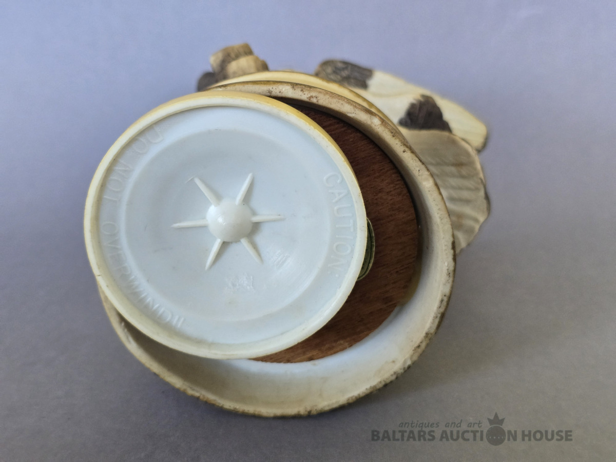 Porcelāna pūce (biskvīts)Muzikāla (griežas ap savu asi un spēlē skaistu melodiju) H 17 cm.