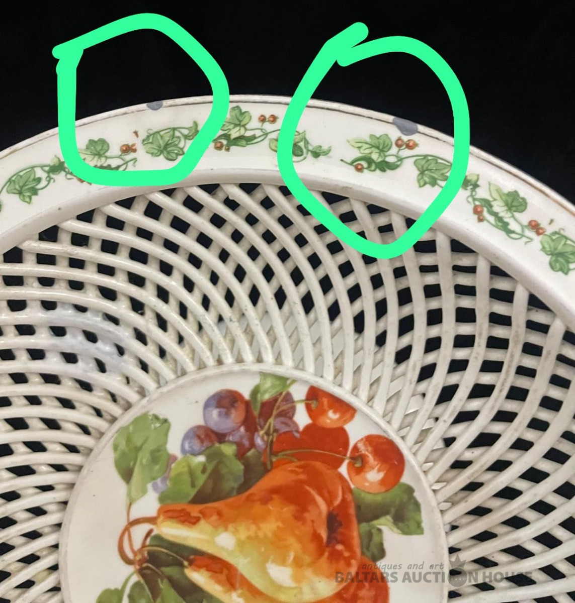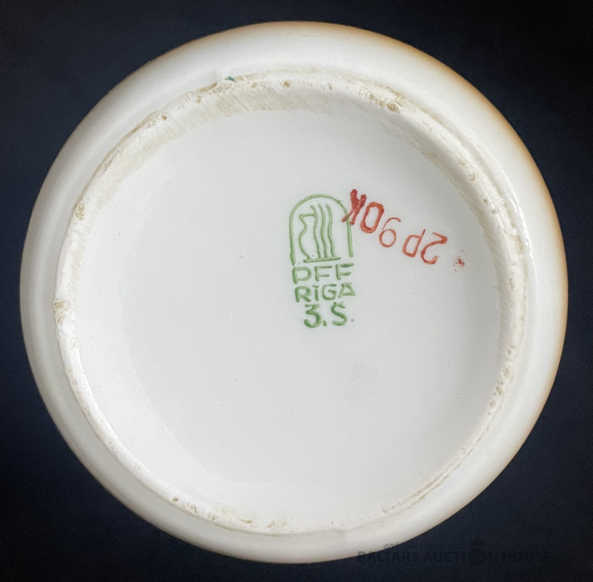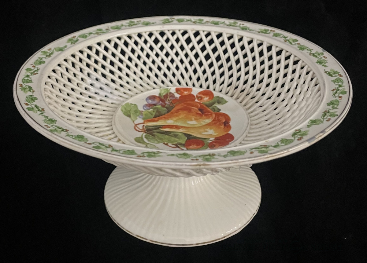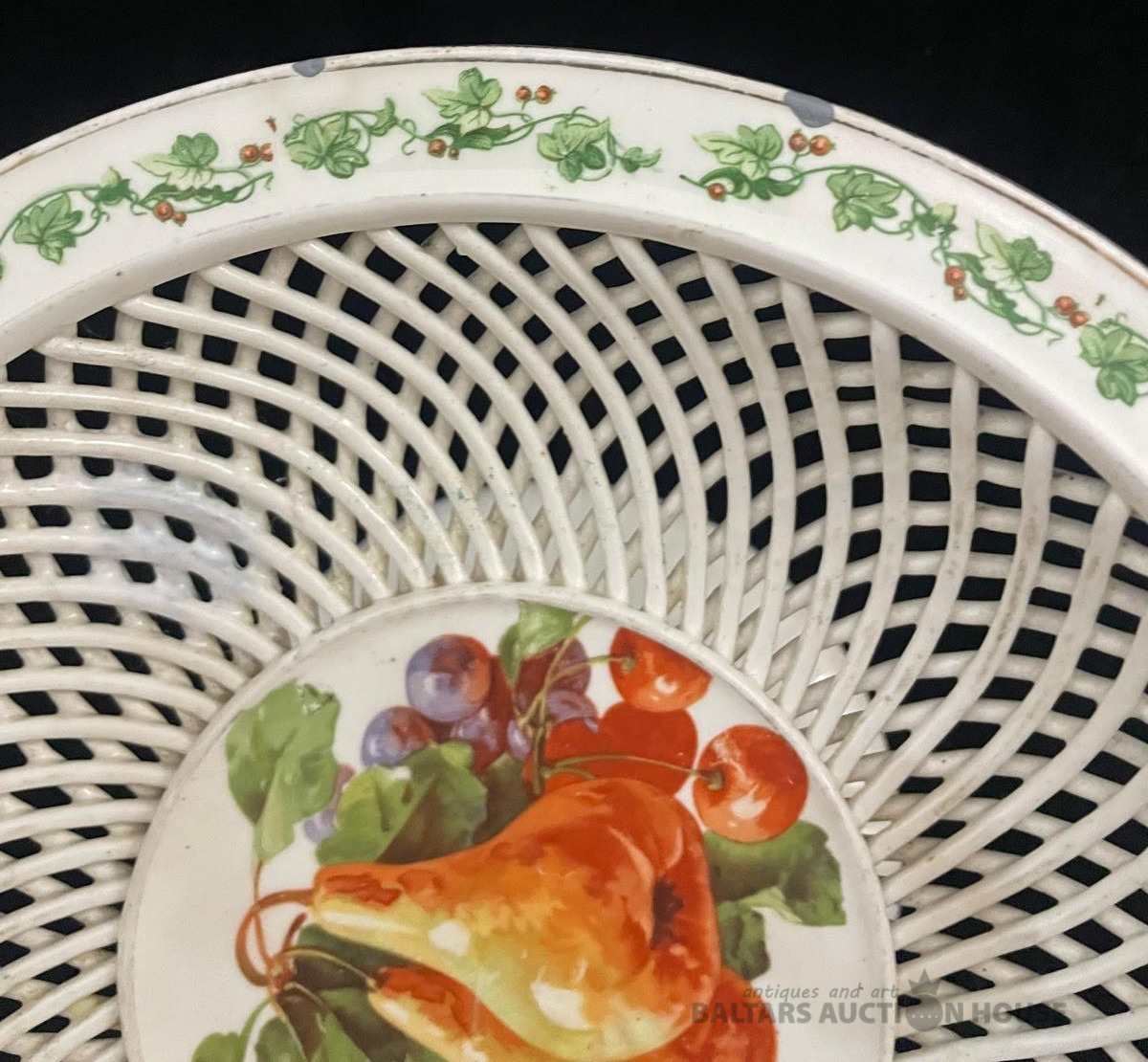 Jakša un kompānijas tirdzniecības nams, Rīga , Augļu/saldumu trauks, fajans, zeltījums, dekols, h=9,8 cm, d=19,6 cm, ir vairāki sīki defekti, daļa ir uz foto