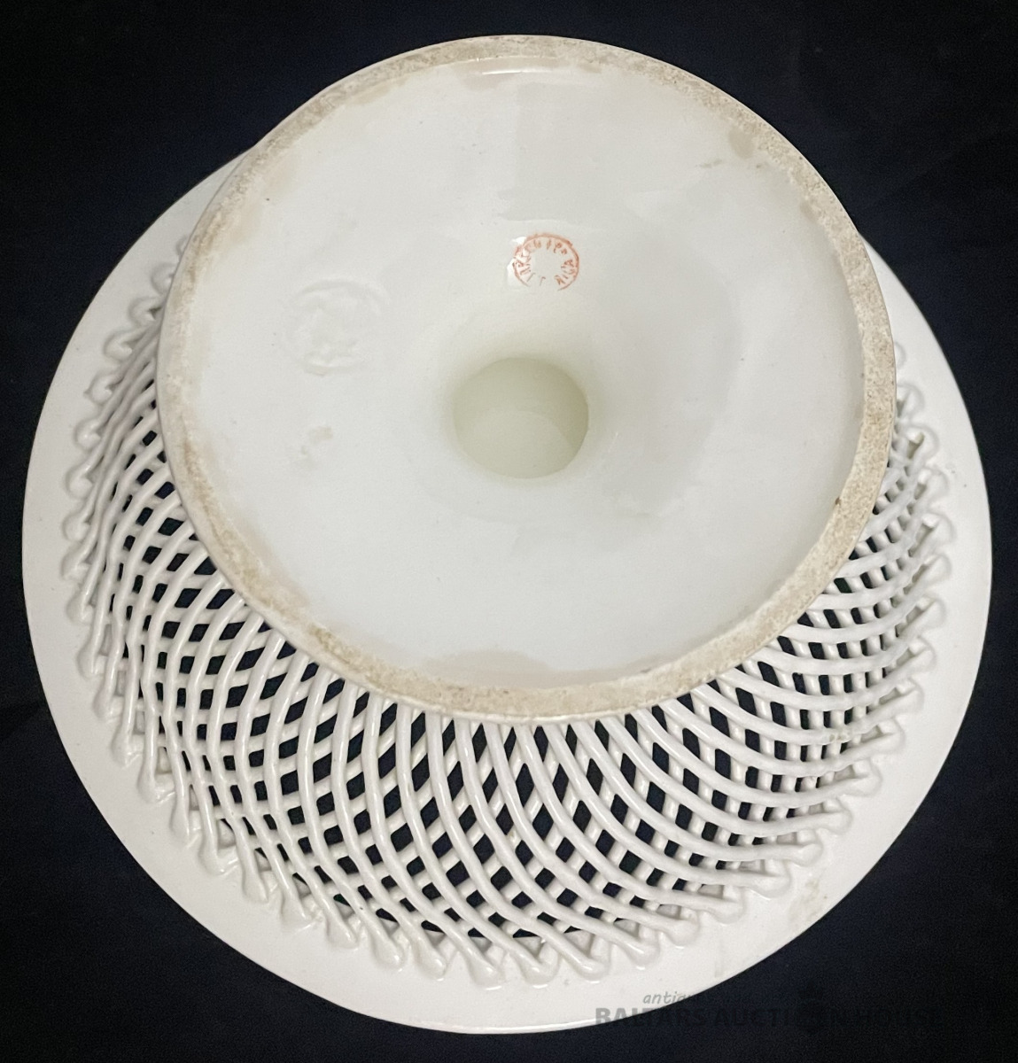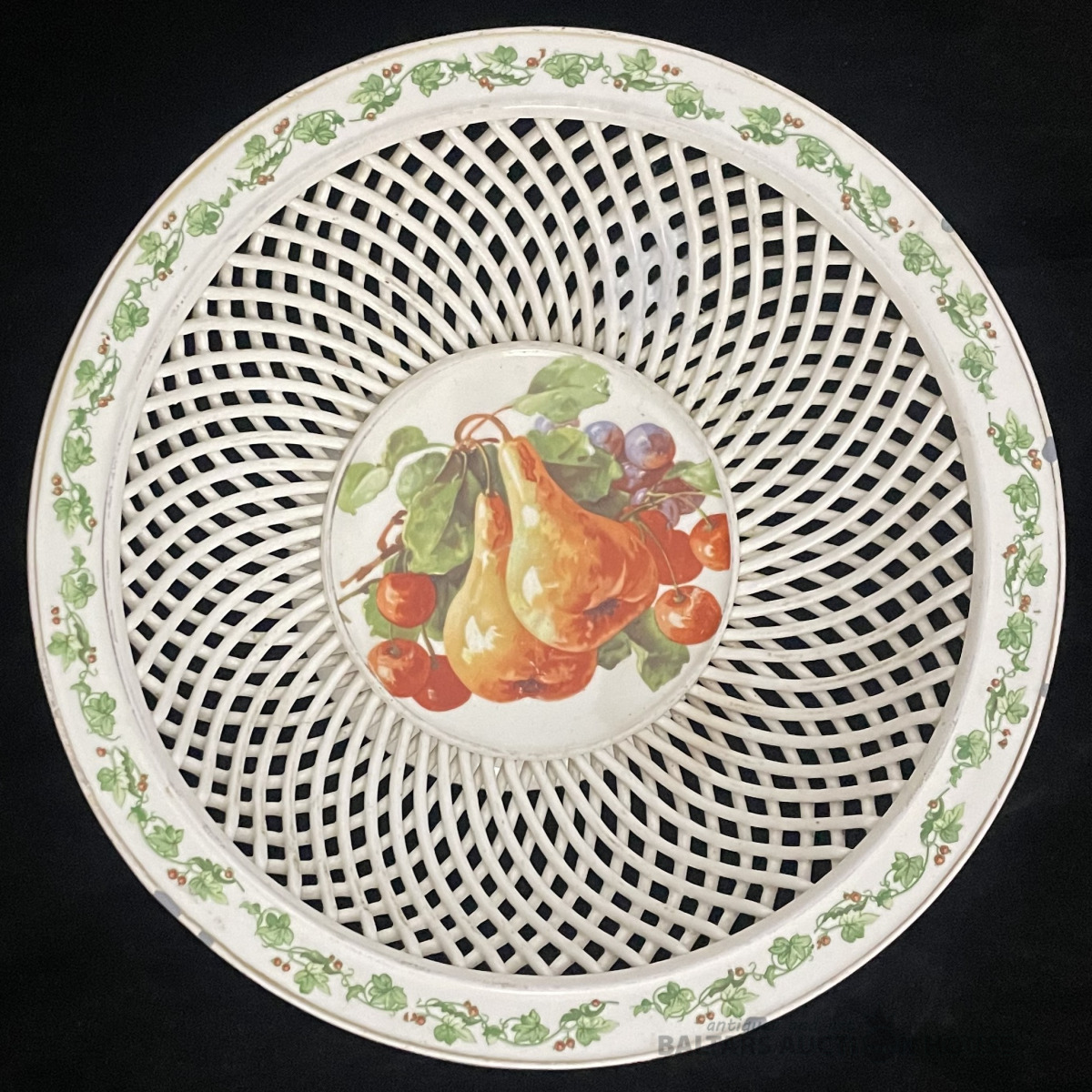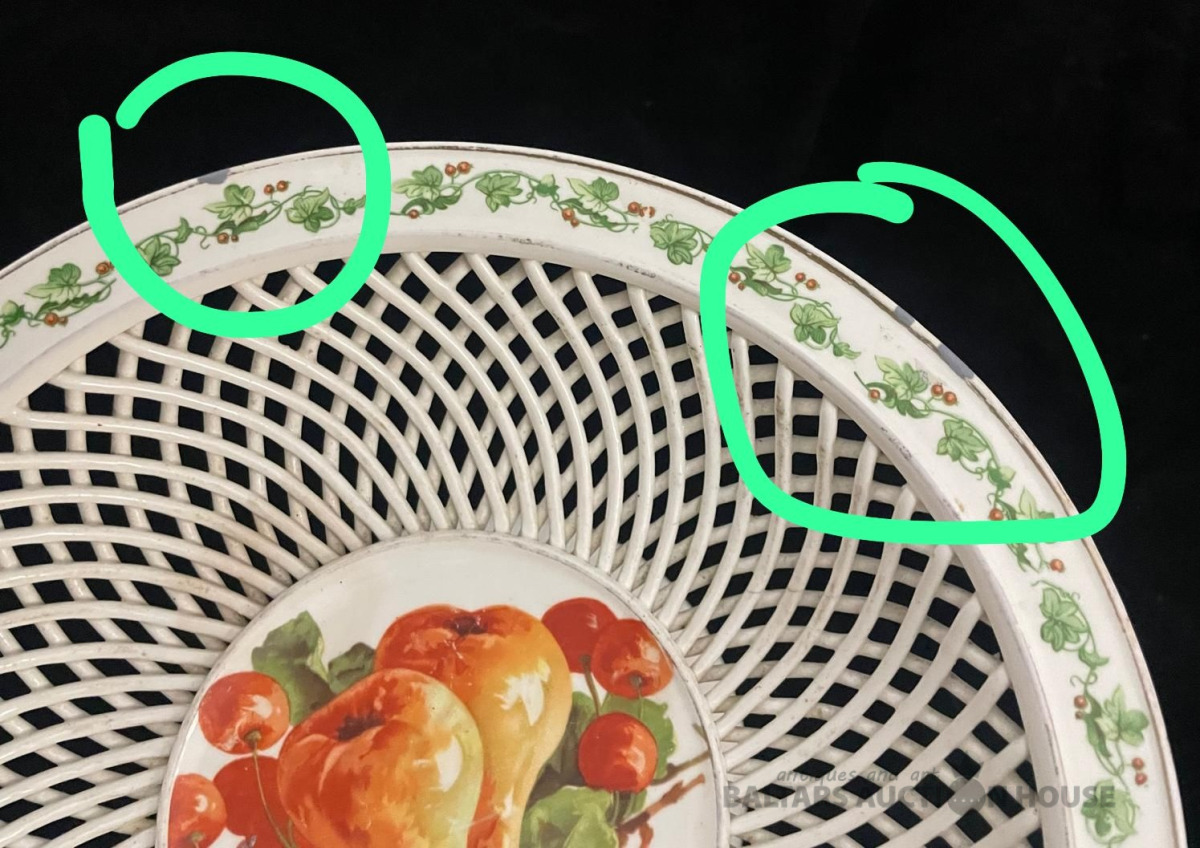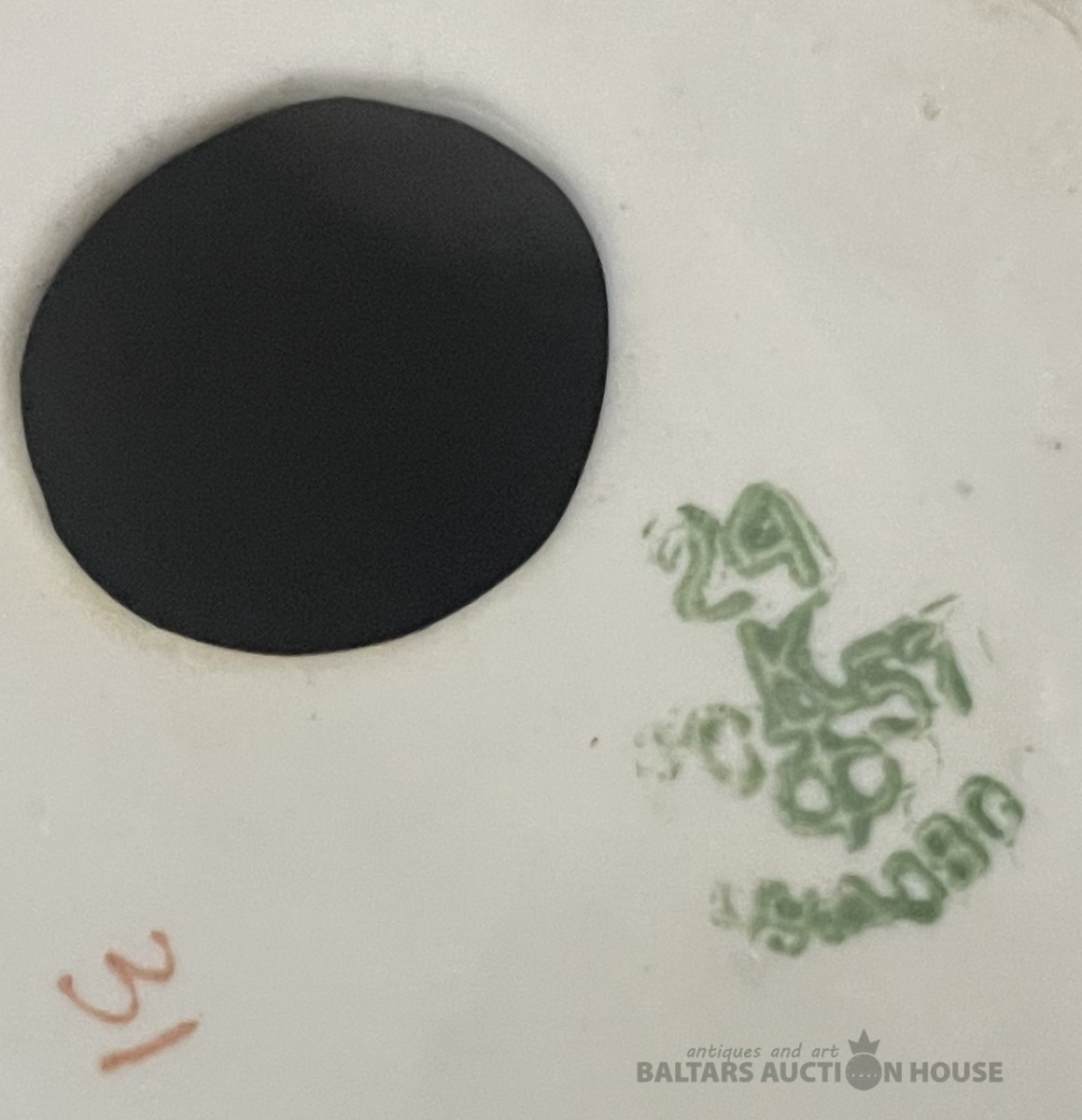 Jakša un kompānijas tirdzniecības nams, Rīga , Augļu/saldumu trauks, fajans, zeltījums, dekols, h=9,8 cm, d=19,6 cm, ir vairāki sīki defekti, daļa ir uz foto