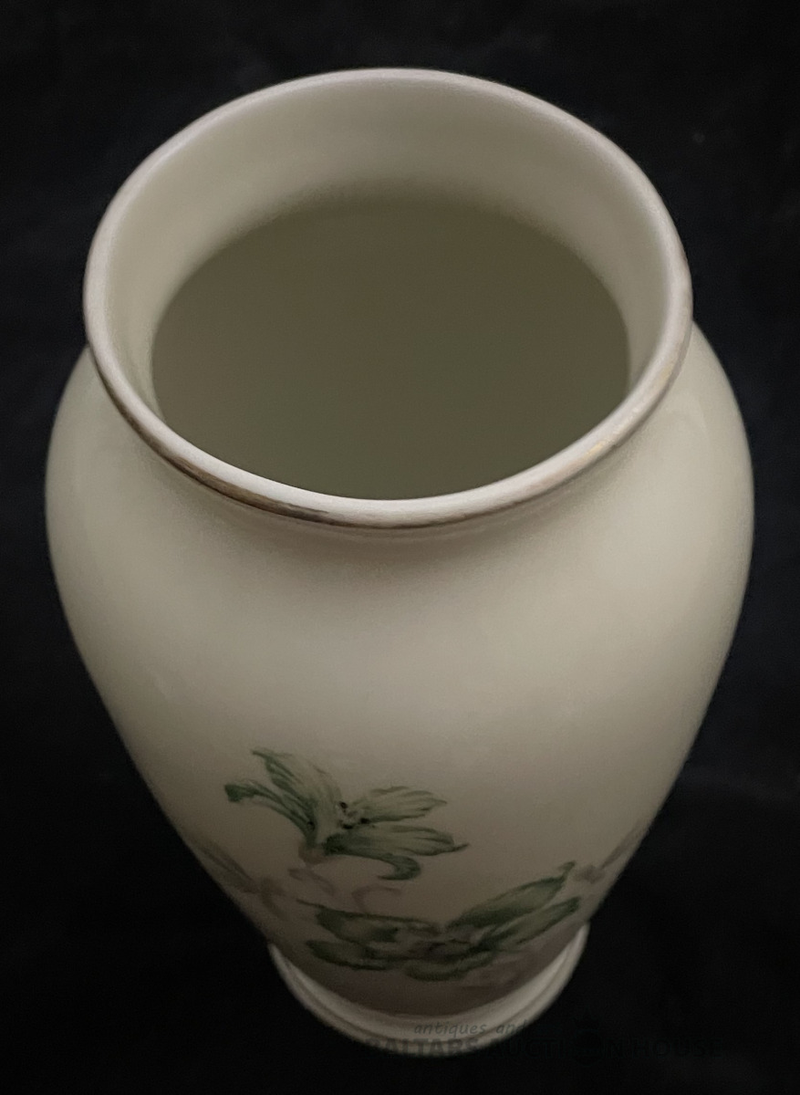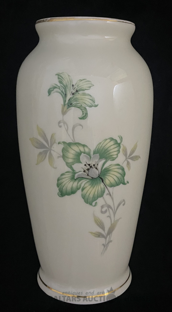 Vāze, porcelāns, zeltījums, aerogrāfija, h=22 cm, Porcelāna, fajansa f-ka Rīgā, neliels ražošanas procesa glazūras defekts