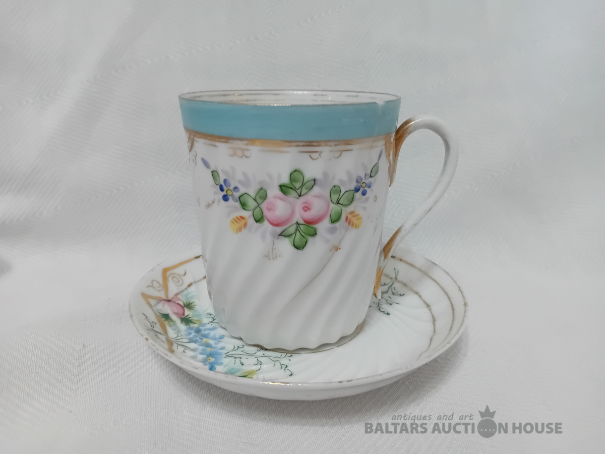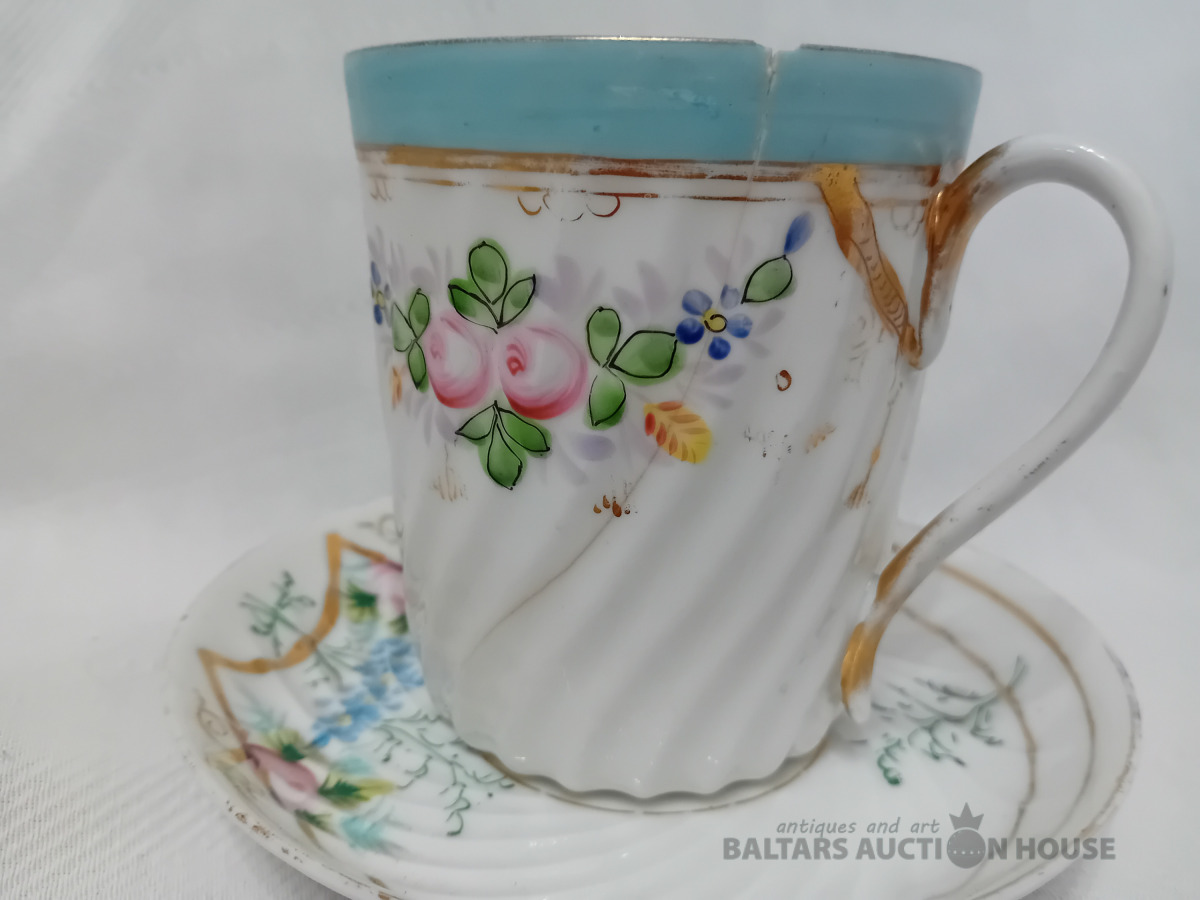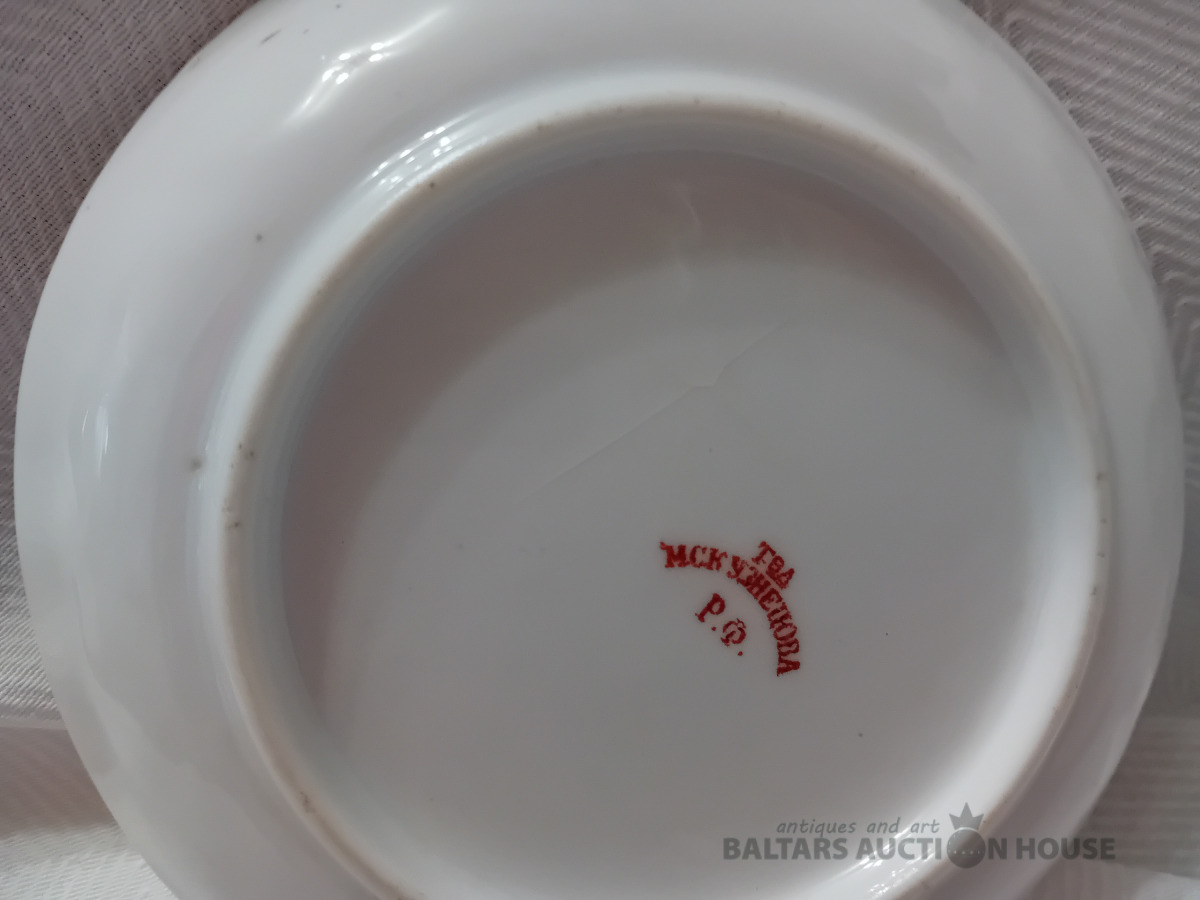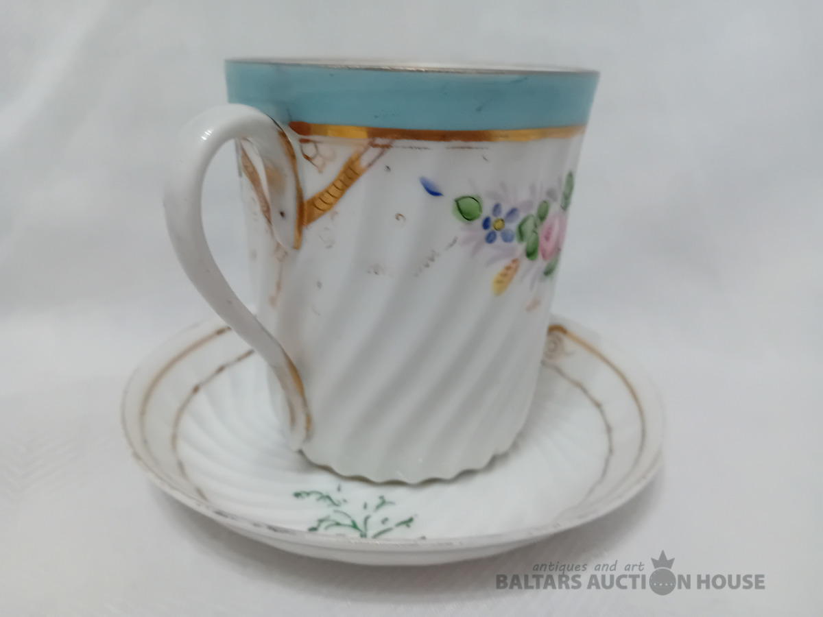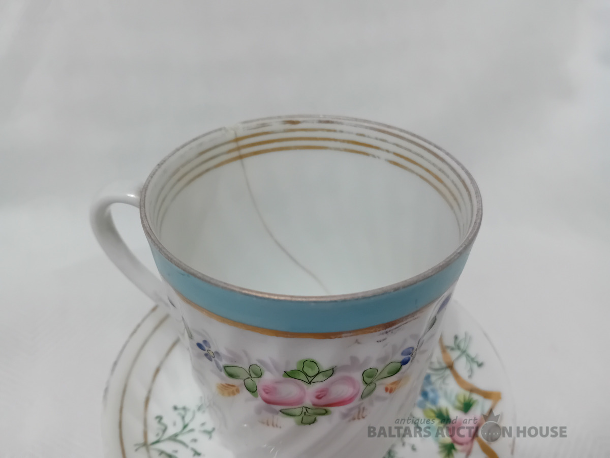 Krūze ar apakštasi,porcelāns,Kuzņecovs, , Krūzei plaisa un robs apkštasei zirnekļa veida plaisa, apakštase piemeklēta