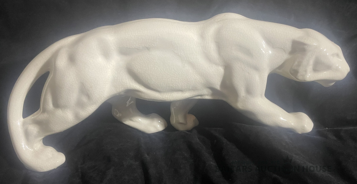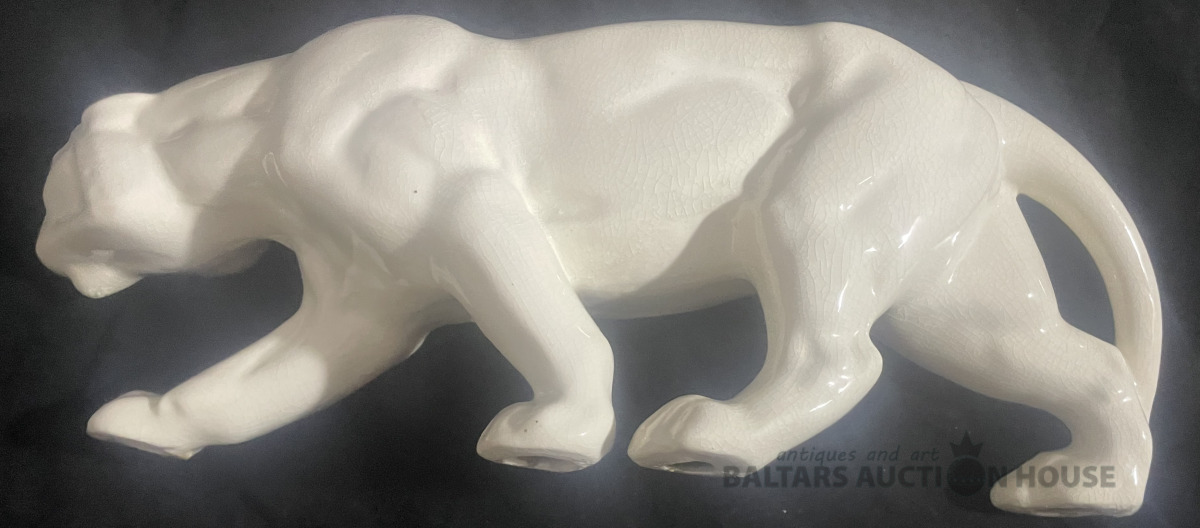 Autors Vladimirs Kandijevs. Liella izmēra figūra "Leopards", porcelāns, 42x14 cm, Kuzņecova darbnīca, marķējums nodzēsts. Figūra labā stāvoklī, bez defektiem un bez restaurācijas