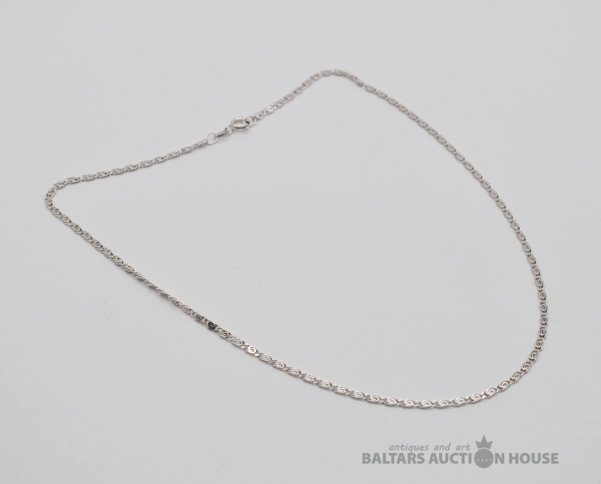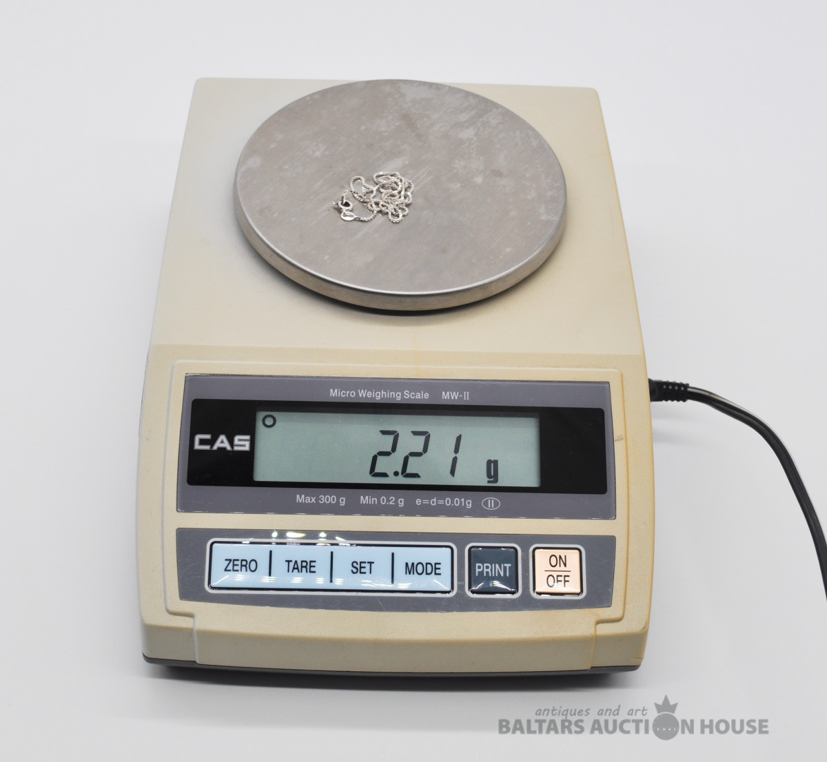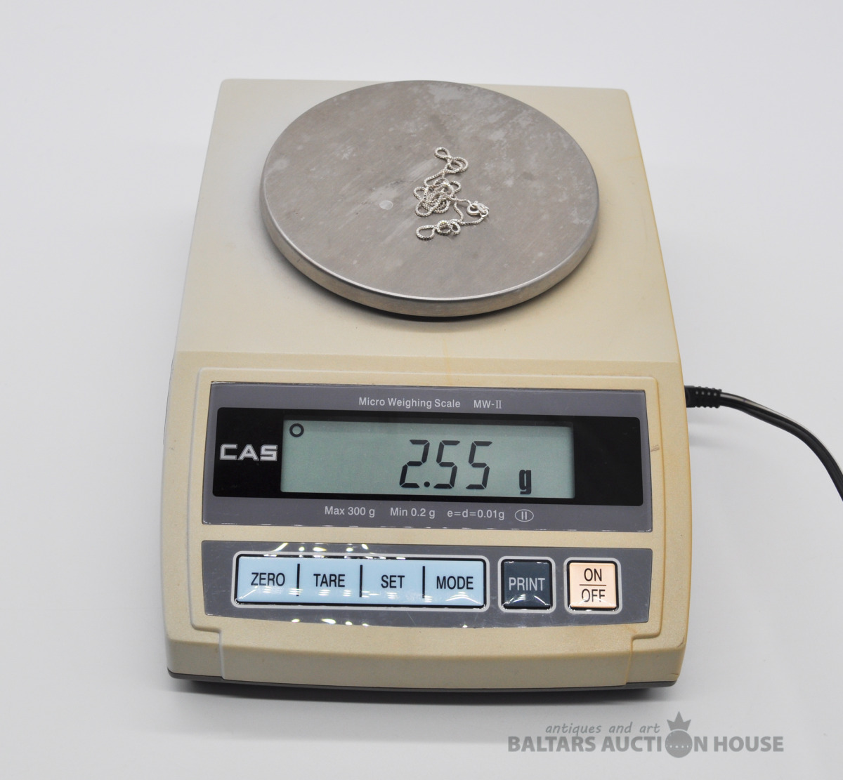 Sudraba ķēdīte. Garums 45.5 cm. Svars 2.5 grami.