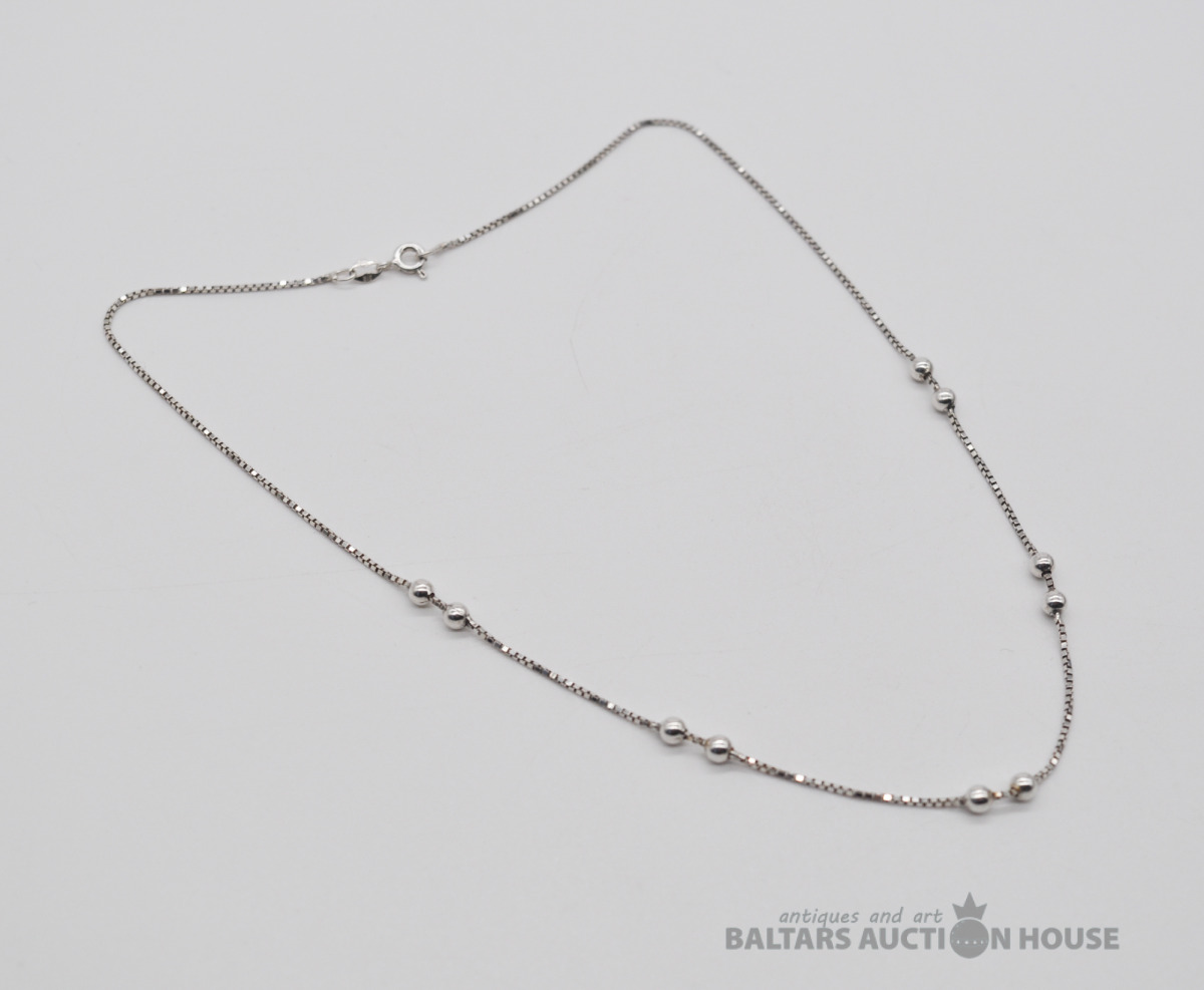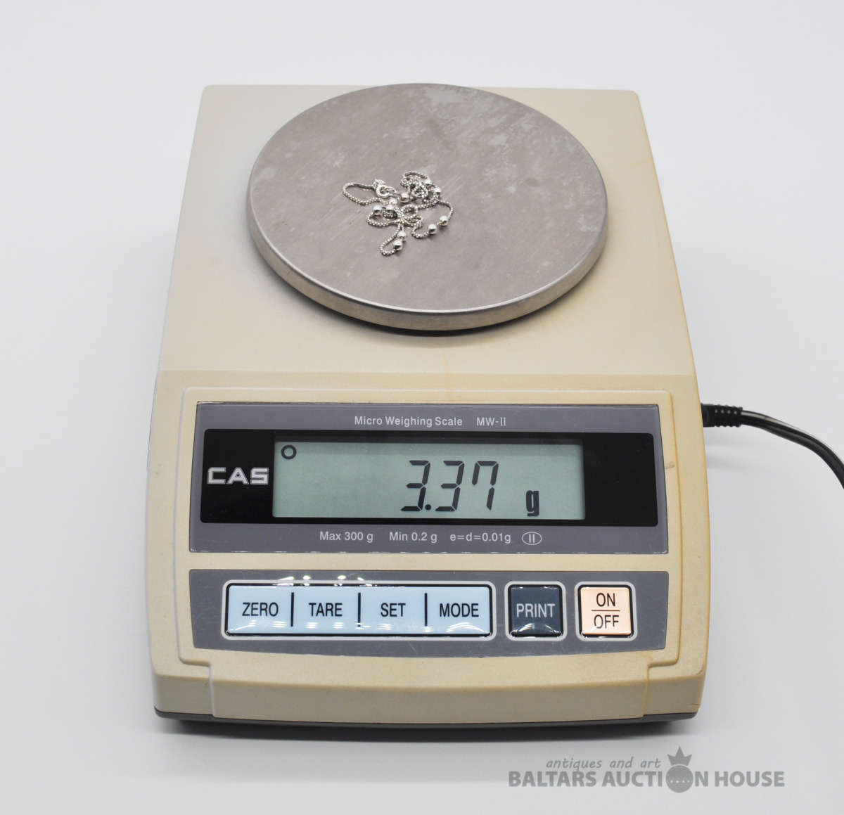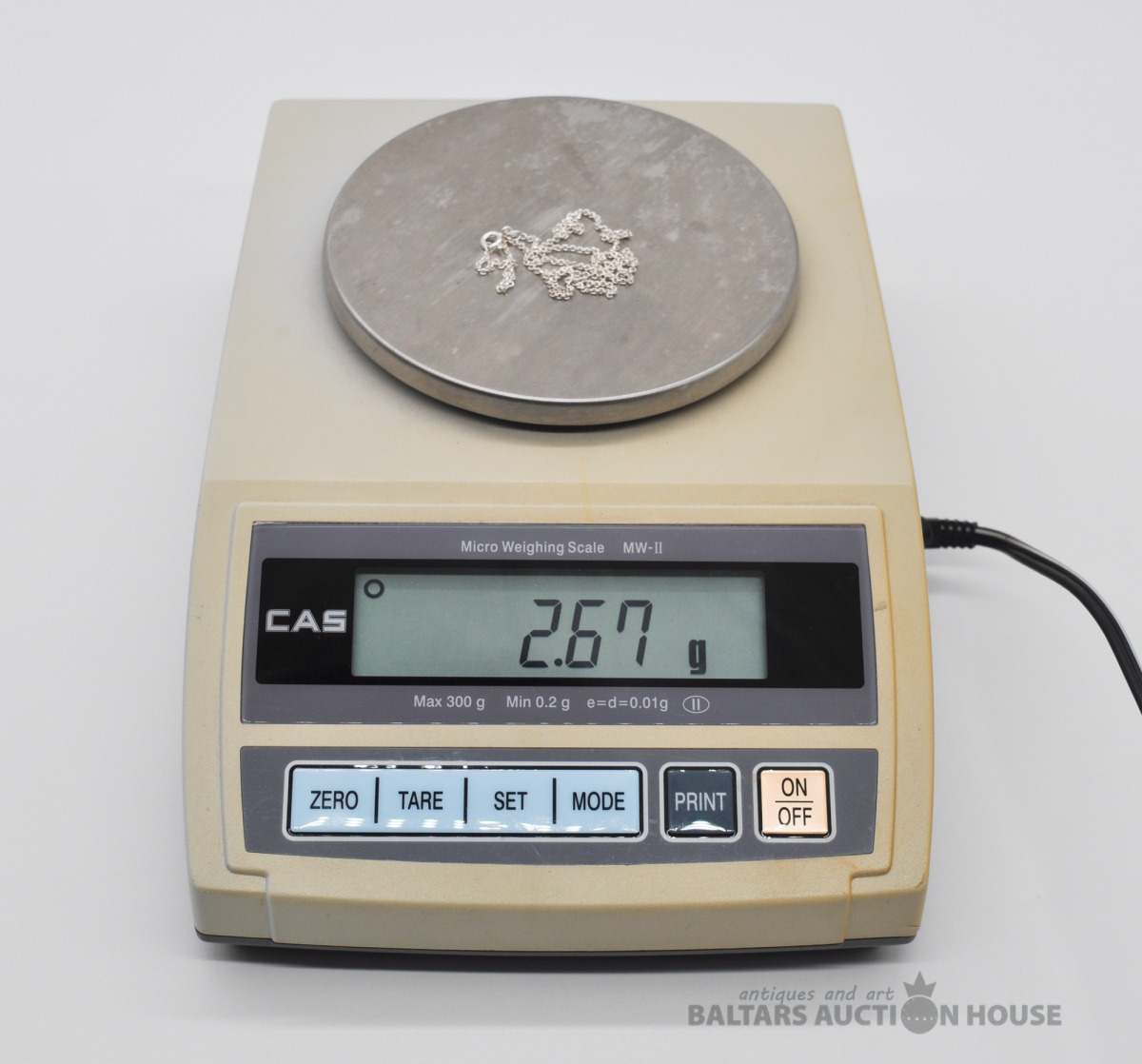 Sudraba ķēdīte. Garums 45.5 cm. Svars 2.5 grami.