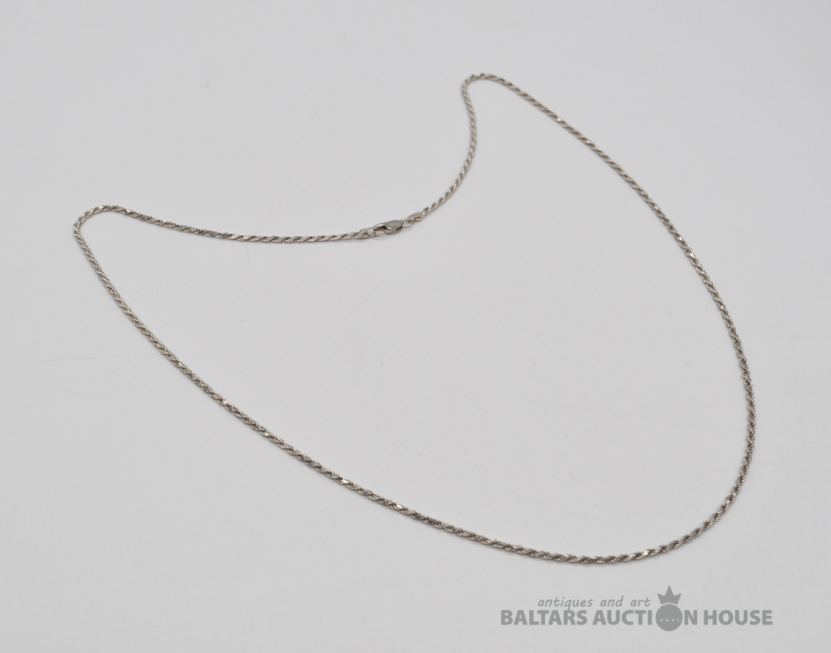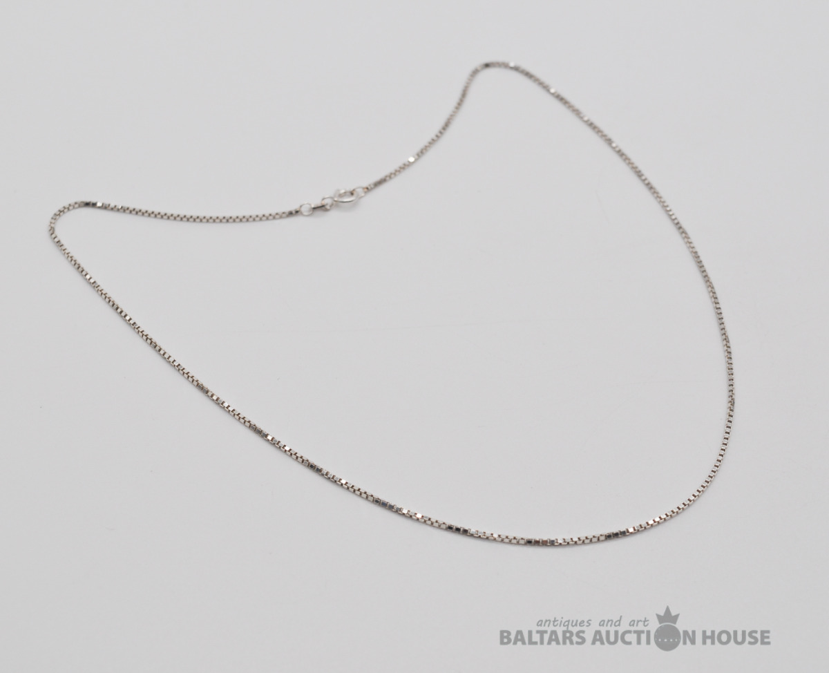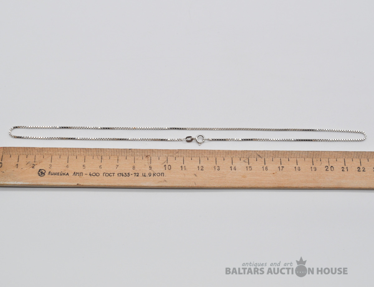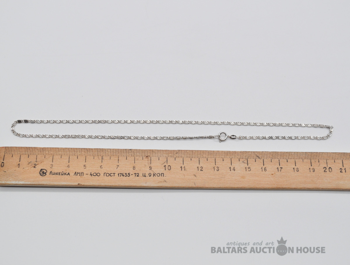Sudraba ķēdīte. Garums 44.5 cm. Svars 3.6 grami.