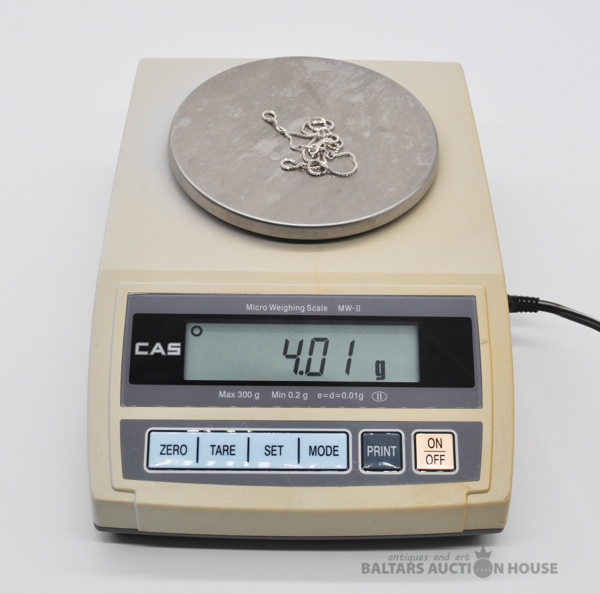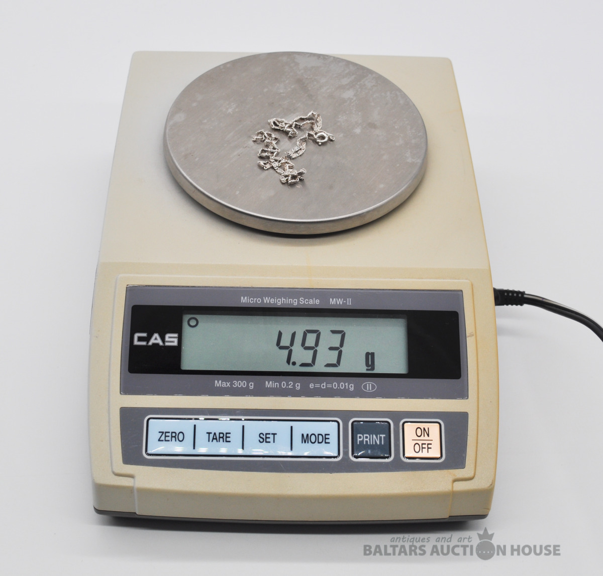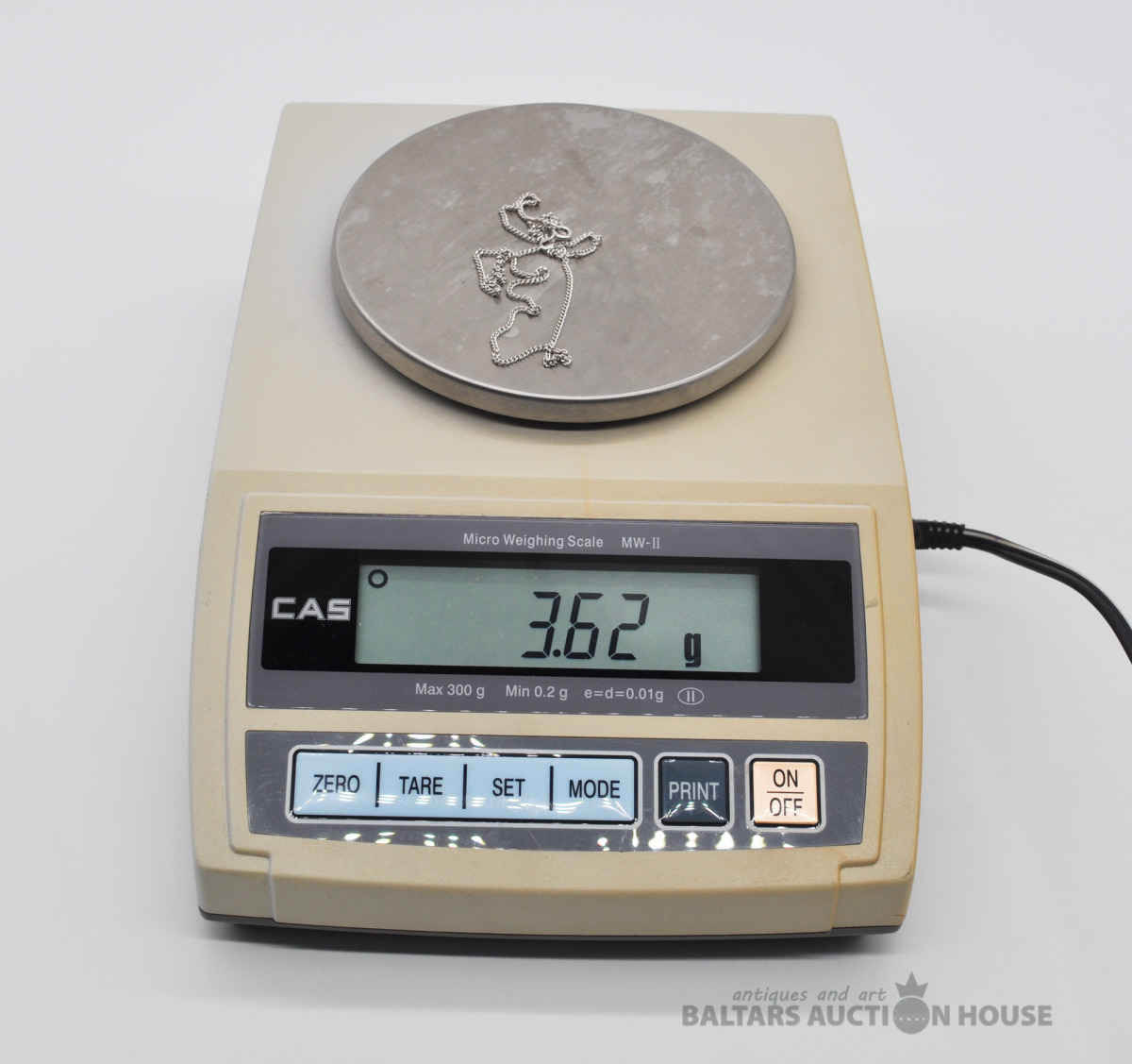 Sudraba ķēdīte. Garums 44.5 cm. Svars 3.6 grami.