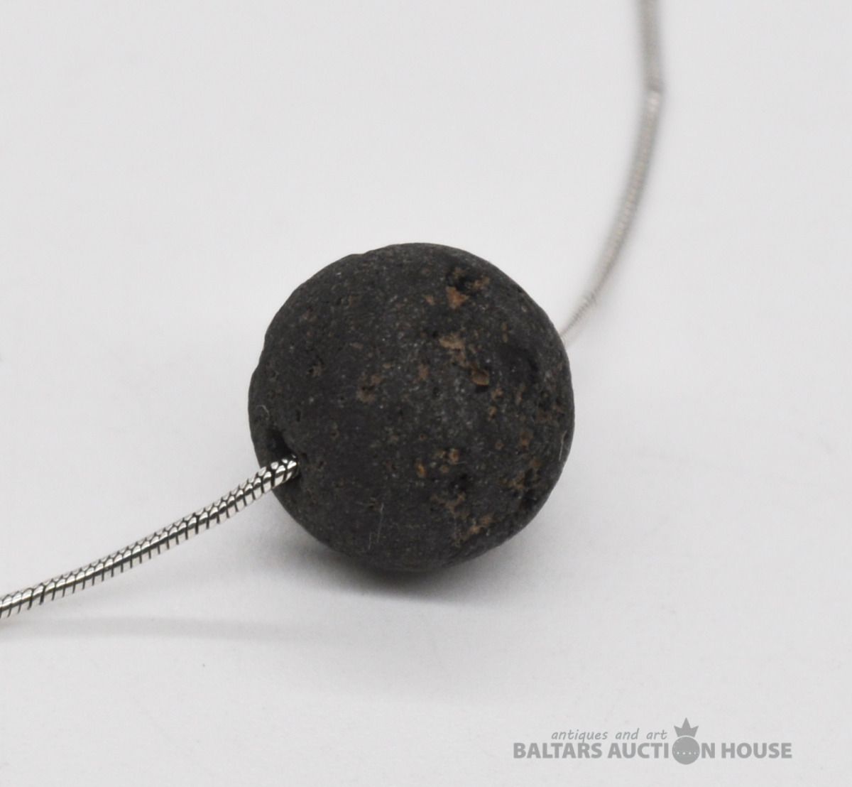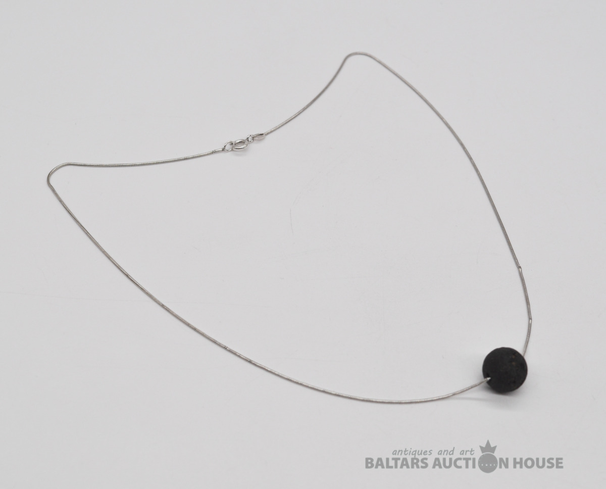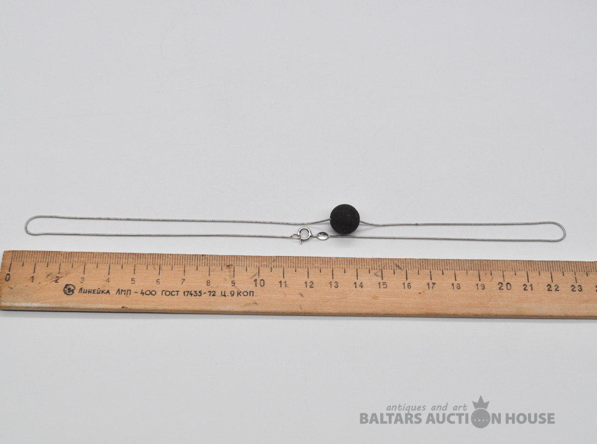 Sudraba ķēdīte ar lavas piekariņu. Garums 47 cm. Svars 4.6 grami.