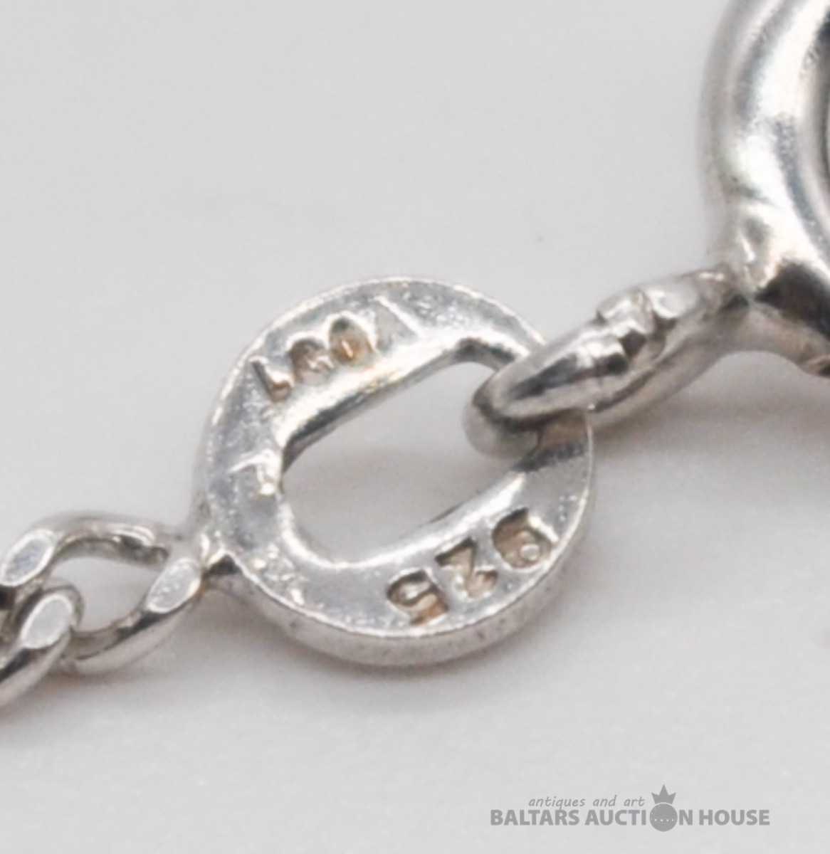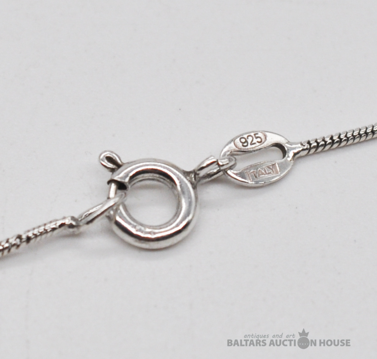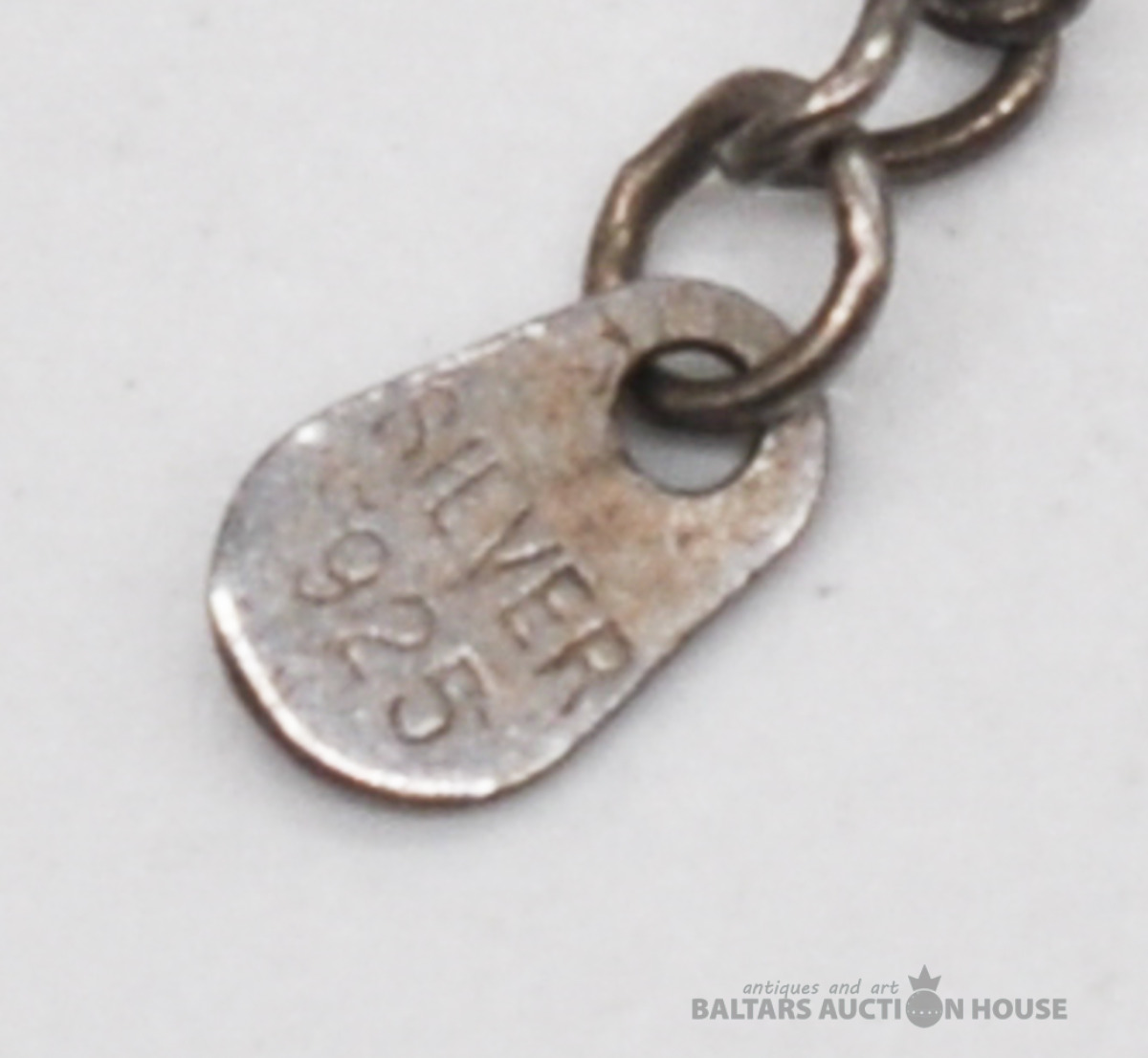 Sudraba ķēdīte ar lavas piekariņu. Garums 47 cm. Svars 4.6 grami.