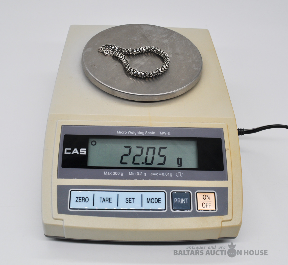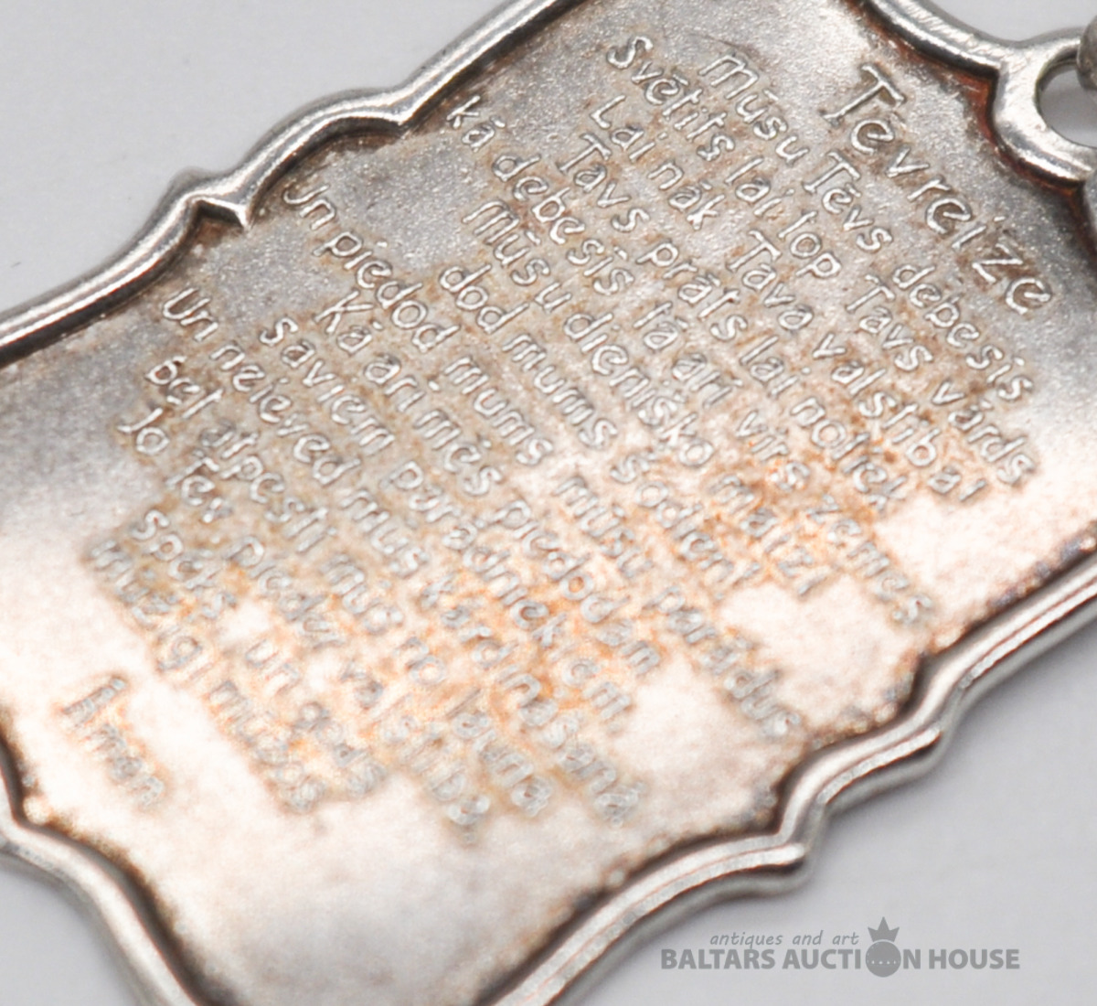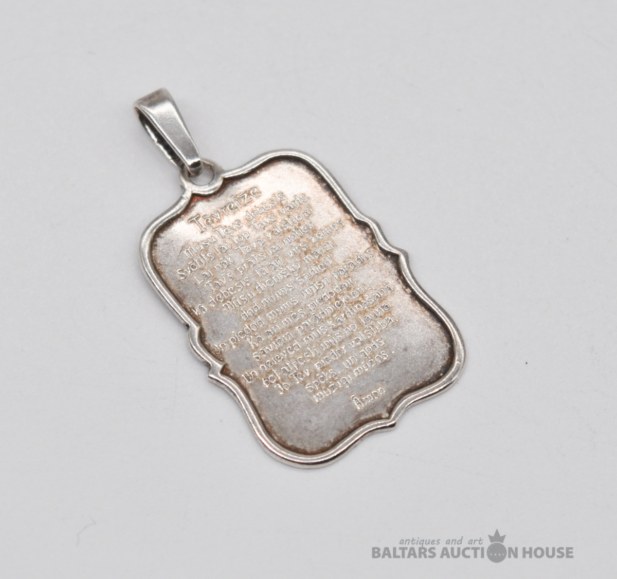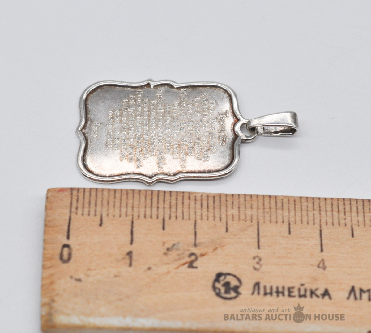 Sudraba aproce. Latvijas prove. Garums 20 cm. Svars 22 grami.