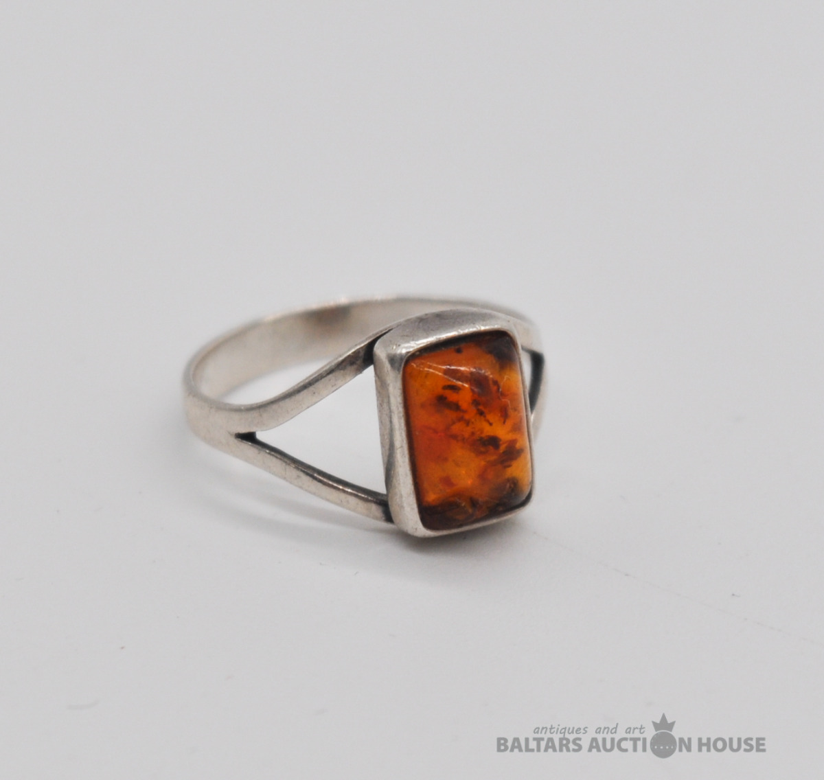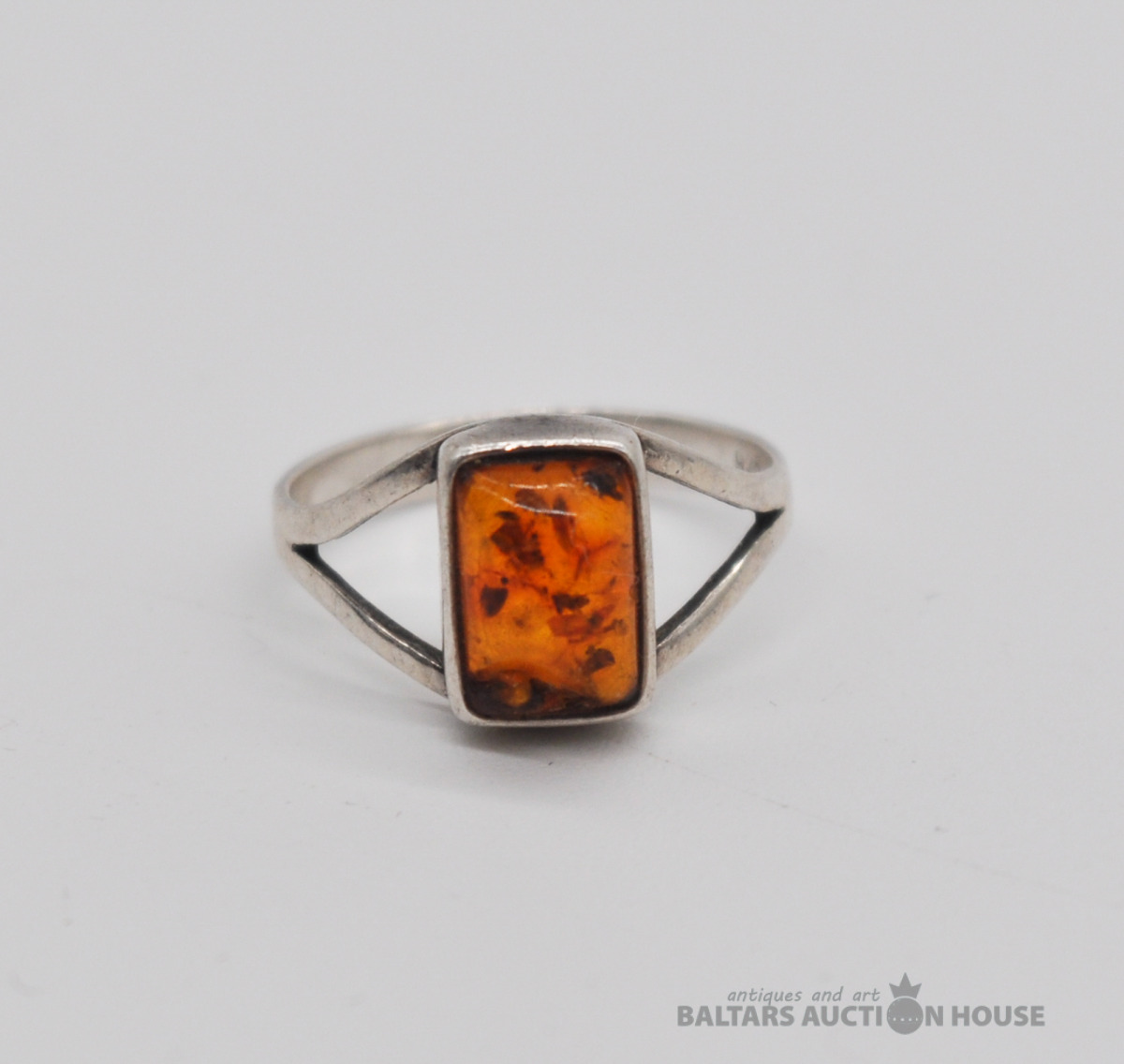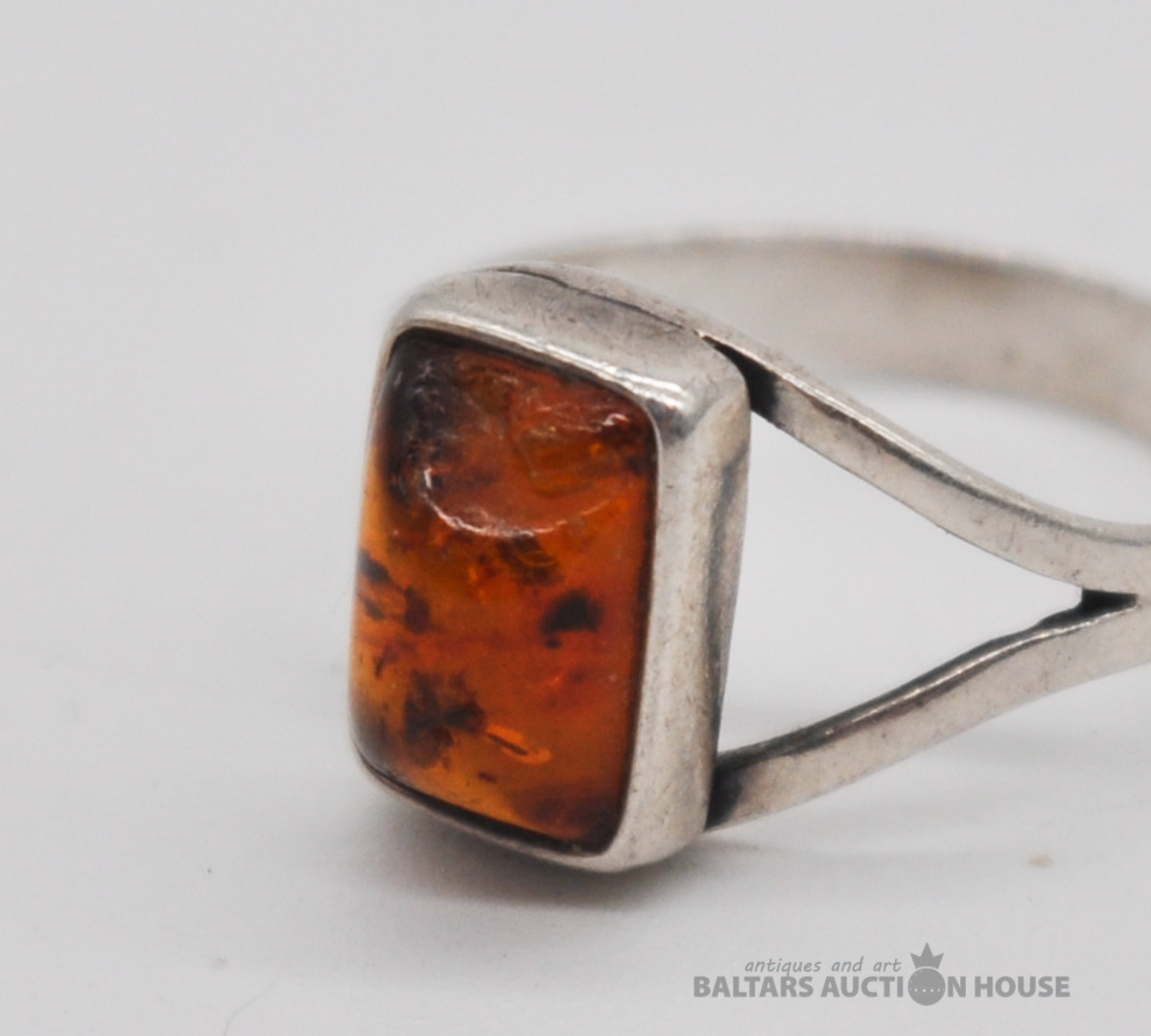 Sudraba gredzens ar dzintaru. Svars 1.7 grami.