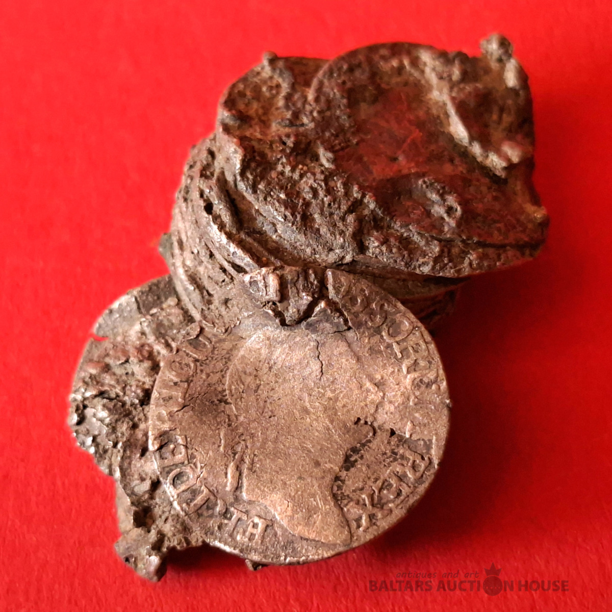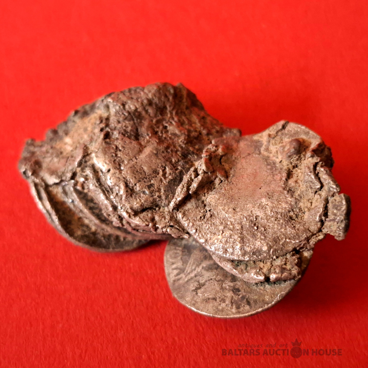 Izkausētas sudraba monētas. Interesants priekšmets. Svars: 20,64 grami.
