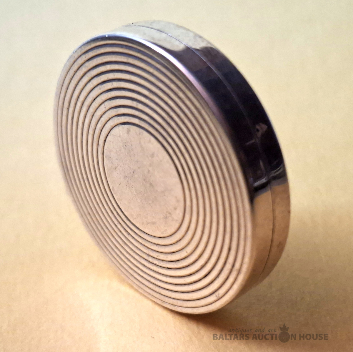 Apaļš priekšmets. Sudrabs. Ražots Zviedrijā. Nav noteikts. Svars: 8 grami. Viss darbojas.