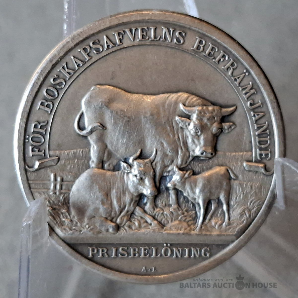 ZVIEDRIJA. Sudraba (uzraksts uz jostas: SUDRABS) Sēdermanlandes apgabala medaļa par sasniegumiem lopkopībā. Izdota 1929. gadā (31 mm, 15,1 g, 12 stundas). Ražotājs: A. un E. Lindbergi.