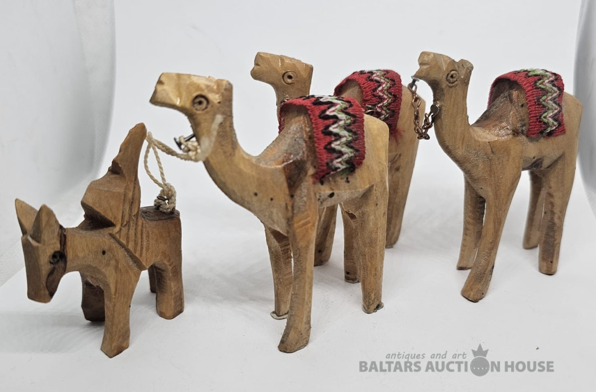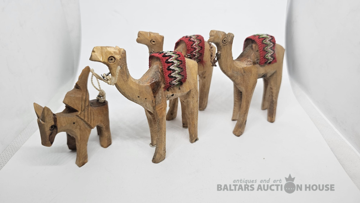 Koka kamieļu karavāna ar vedēju, statuetes. Rokas darbs