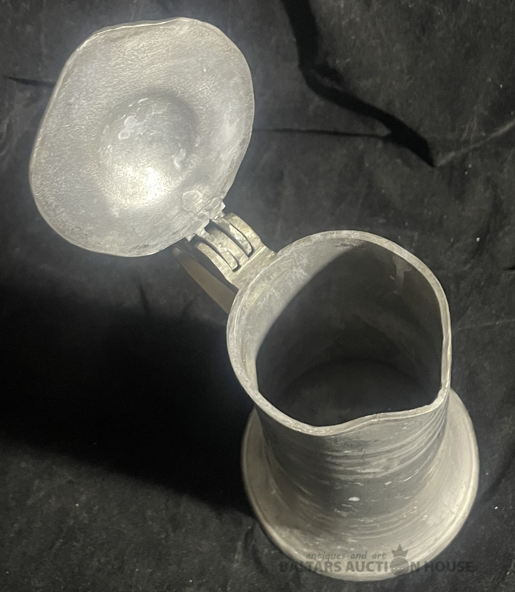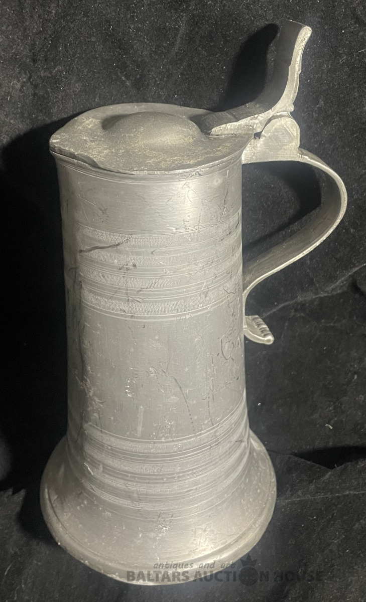 Senlaicīgs alus kauss, alva, h=20,5 cm, XIX g.s.beigu gadi, darbnīcas marķējums. Iederas skatloga vai privātmājas interjerā !! Laba saglabātība