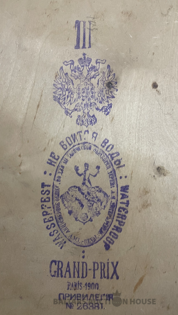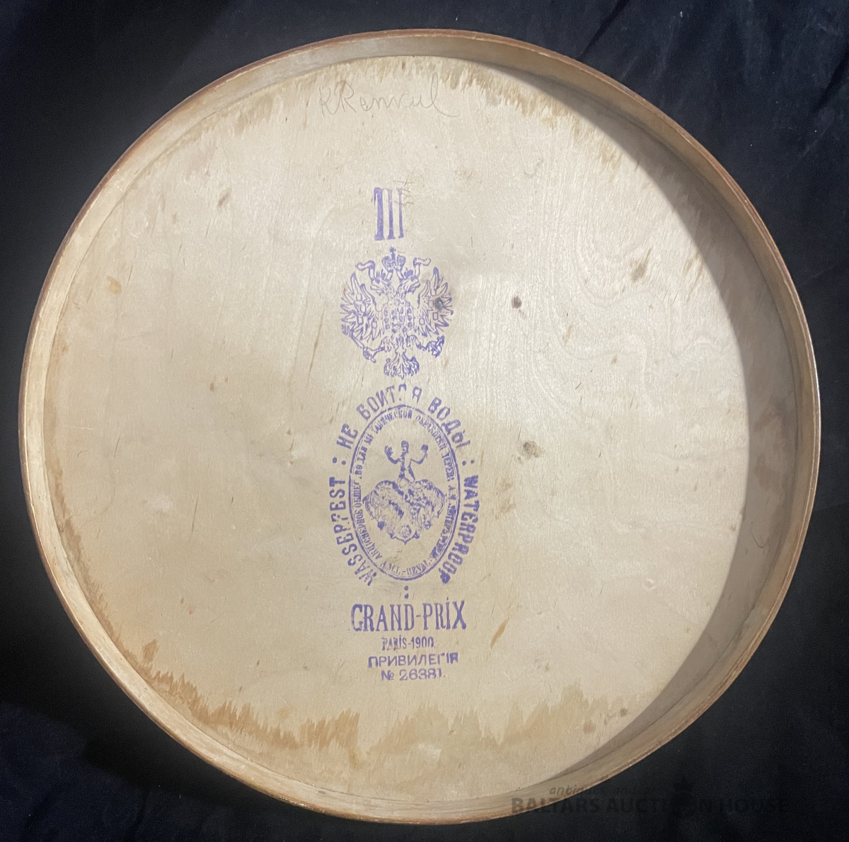 Cepures kaste. Reval, Krievijas Impērija. h=22,5 cm, d=37 cm, par šo modeli iegūta Lielā balva Parīzē 1900.g. apakšmalai 2 defekti !