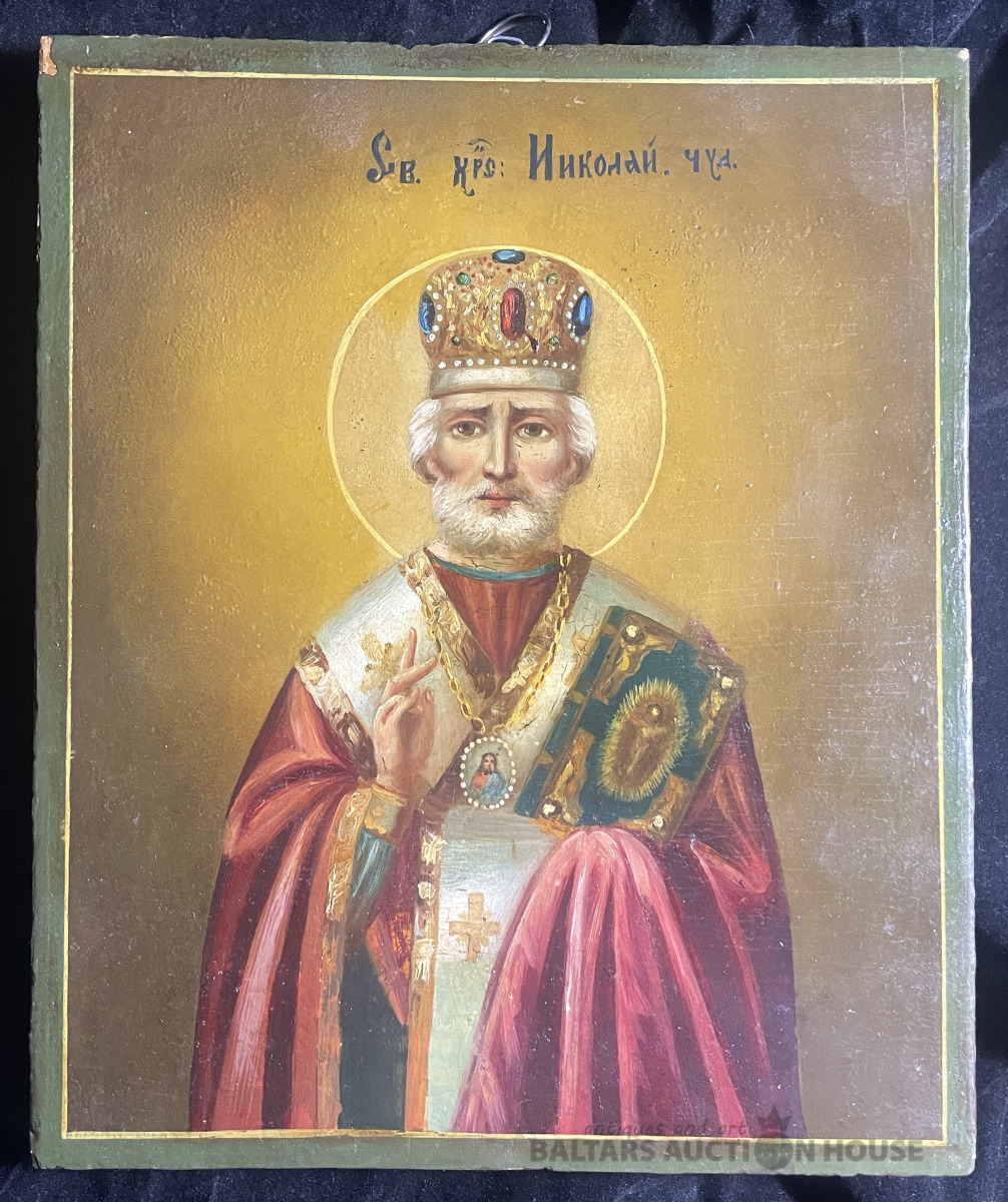 Ikona Nikolajs Brīnumdaris, koks, tempera, 26,4x21,8 cm, ap 1900.g. Laba gleznotāja darbs. Laba saglabātība